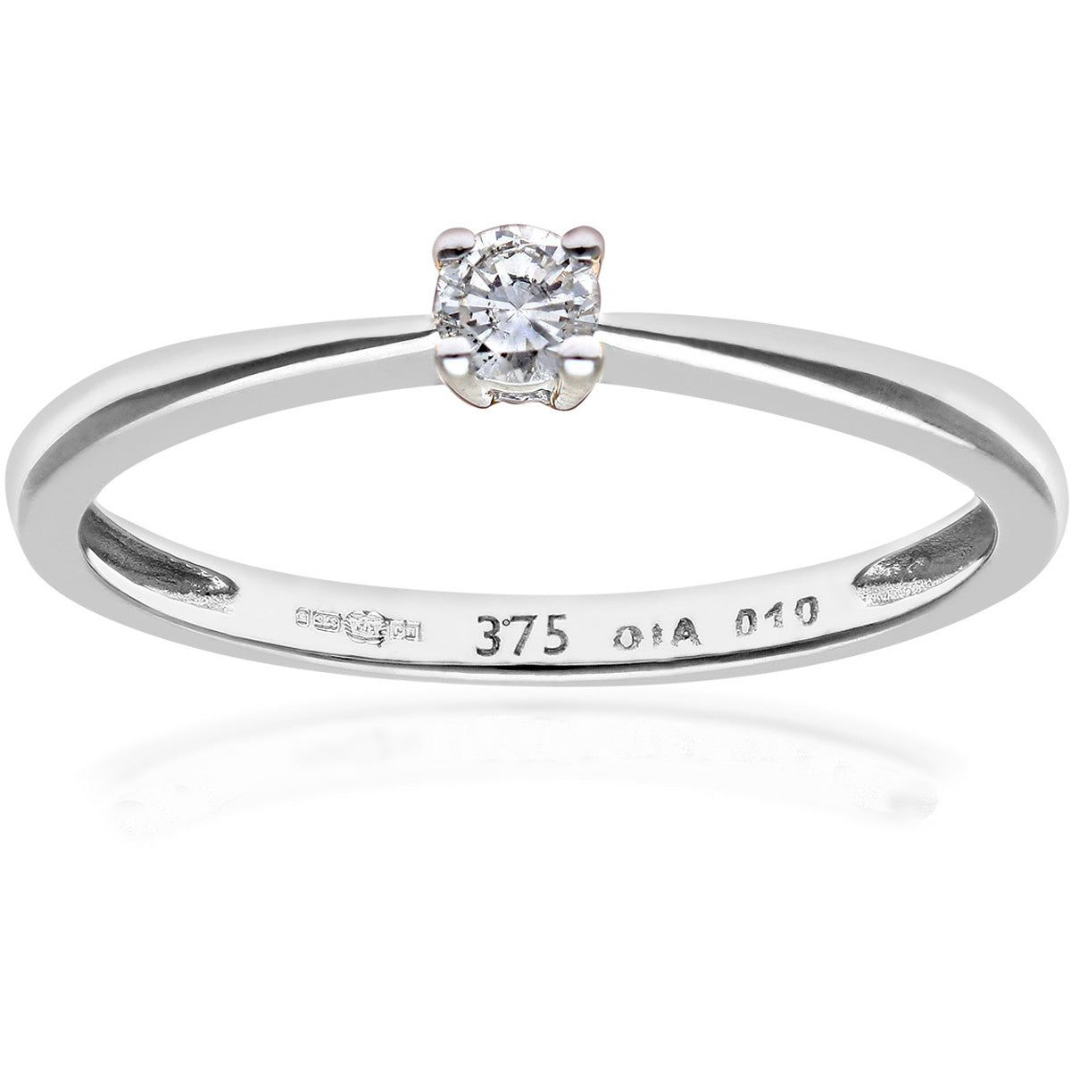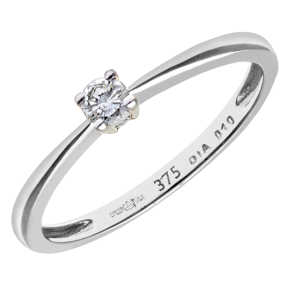 0.1ct Round Diamond 4-Prong Set Solitaire Engagement Ring in UK Hallmarked 9ct White Gold