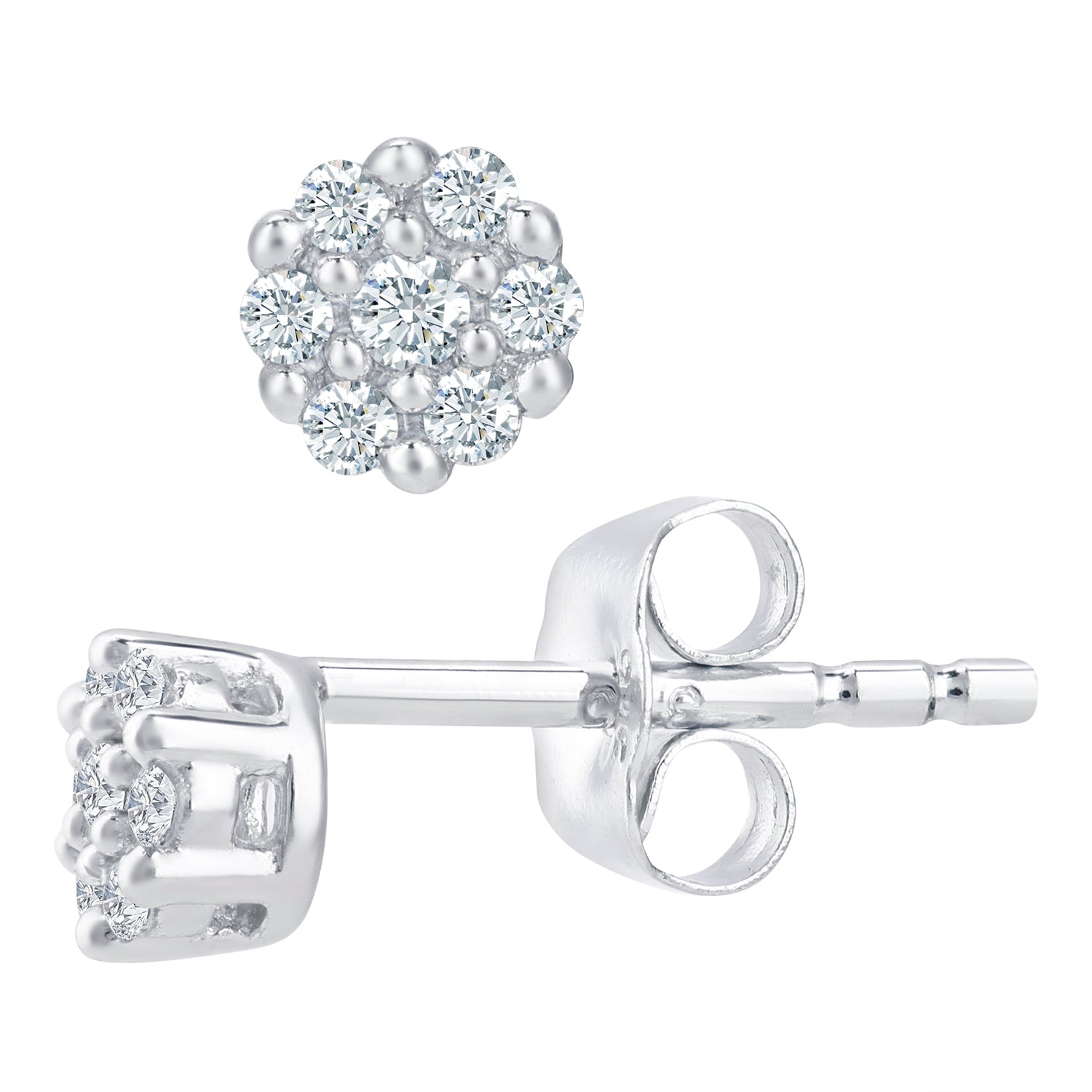 0.1ct Round Diamond Cluster Stud Earrings in 9ct White Gold