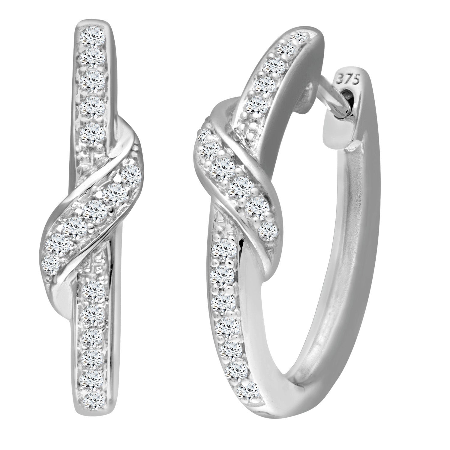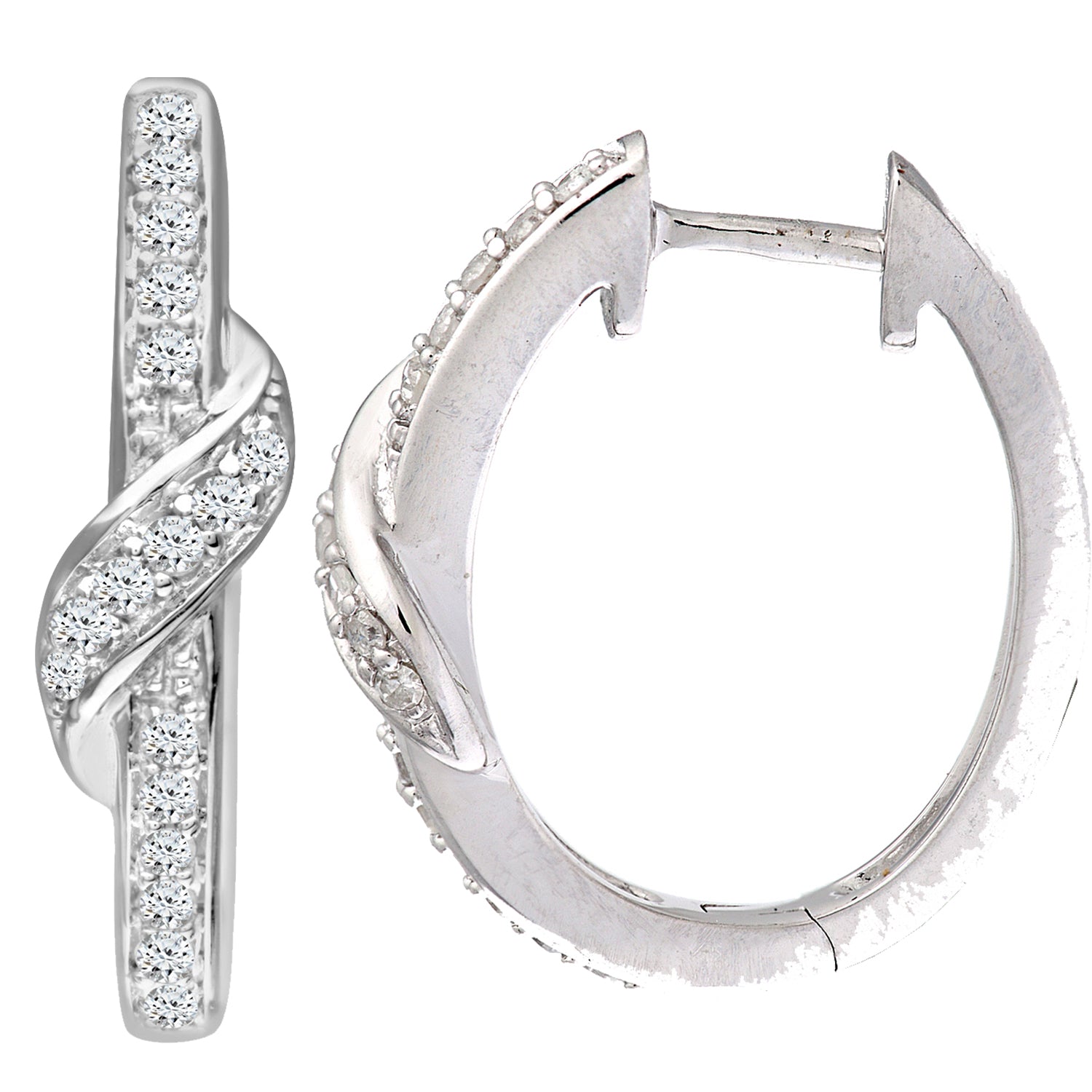 0.22ct Round Diamond Pave Set Huggies Hoop Earrings in UK Hallmarked 9ct White Gold