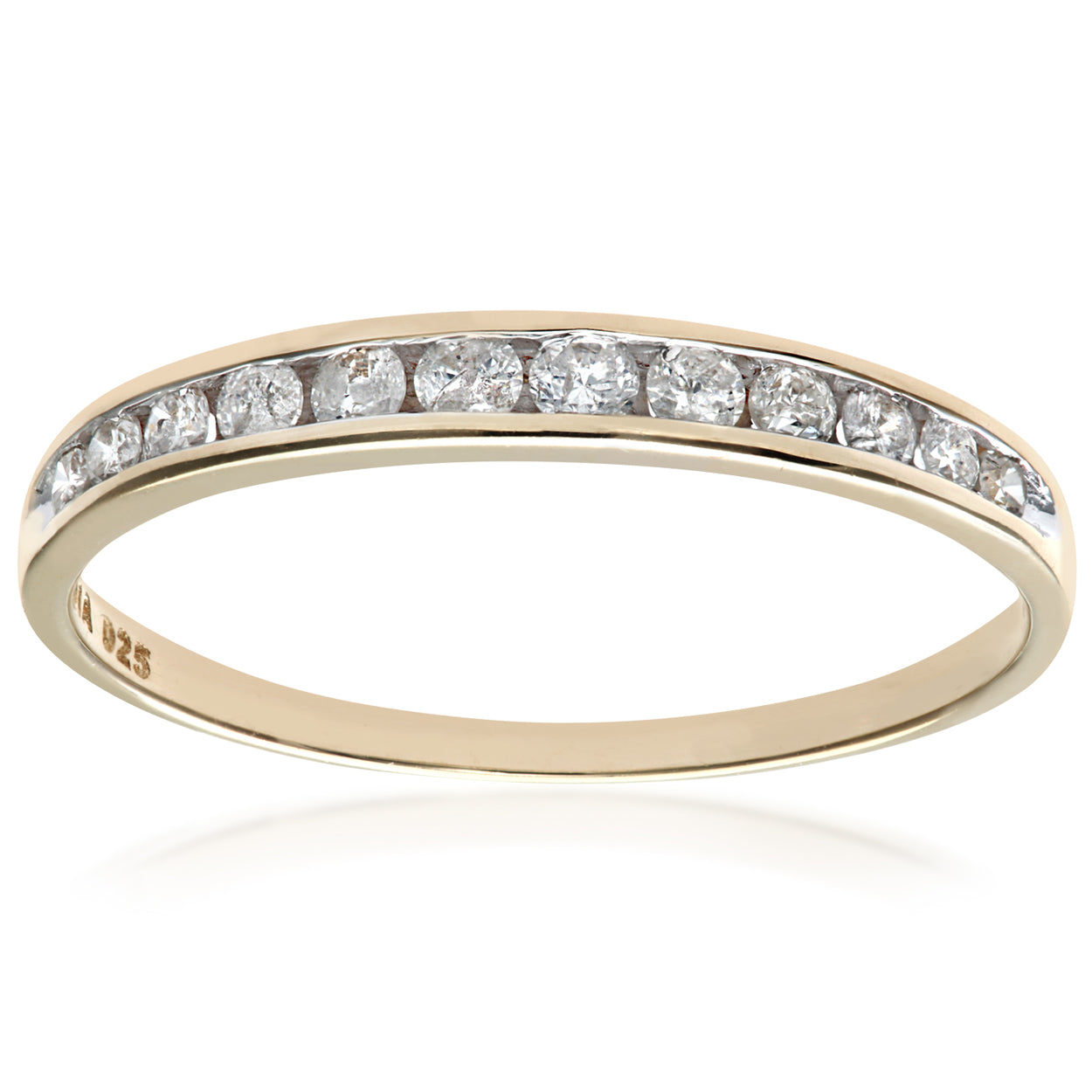 0.25ct Channel Set Round Diamond Graduated Half Eternity Ring in Uk Hallmarked 9ct Yellow Gold