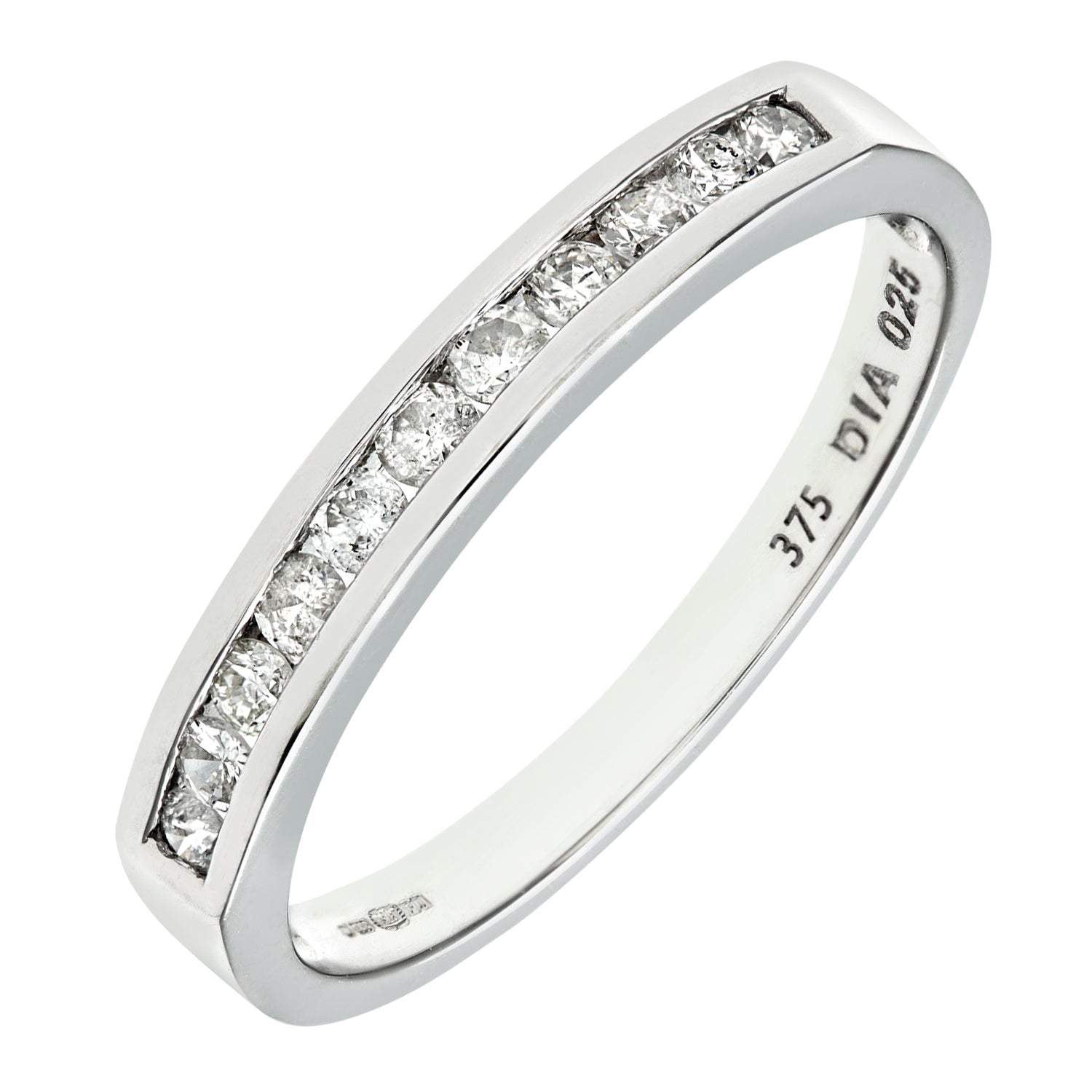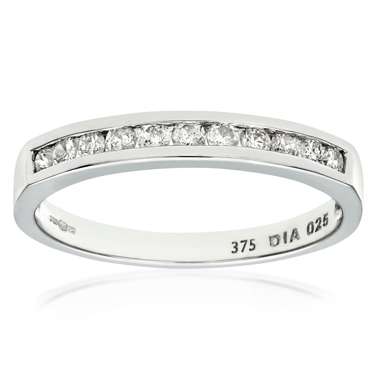 0.25ct Channel Set Round Diamond Half Eternity Ring in UK Hallmarked 9ct White Gold