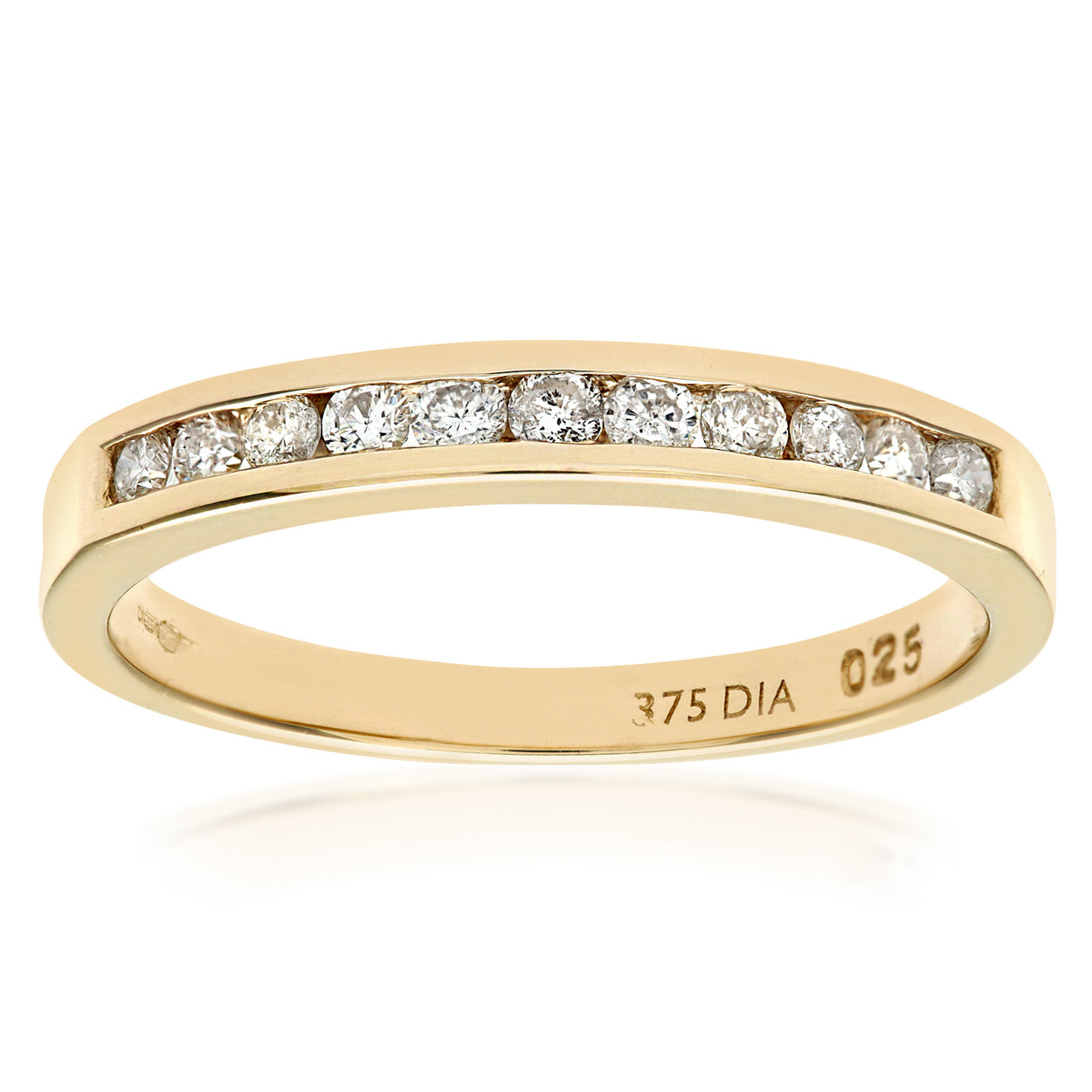 0.25ct Round Diamond Channel Set Half Eternity Ring in UK Hallmarked 9ct Yellow Gold