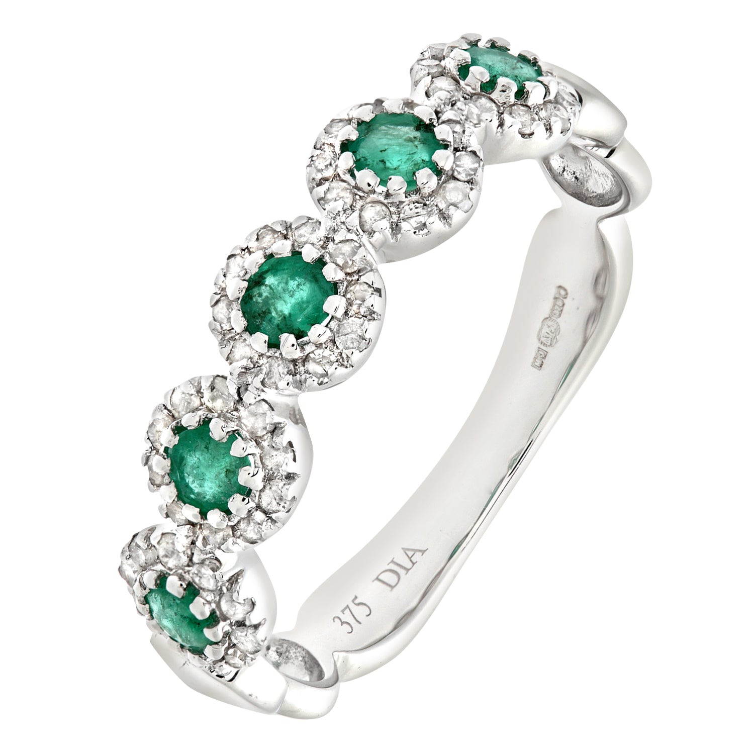 0.26ct Round Emerald and 0.22ct Diamond Pave Set Half Eternity Ring in UK Hallmarked 9ct White Gold
