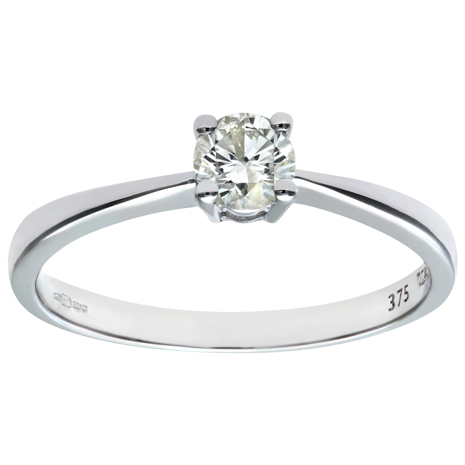 0.33ct Round Diamond 4-Prong Set Solitaire Engagement Ring in UK Hallmarked 9ct White Gold