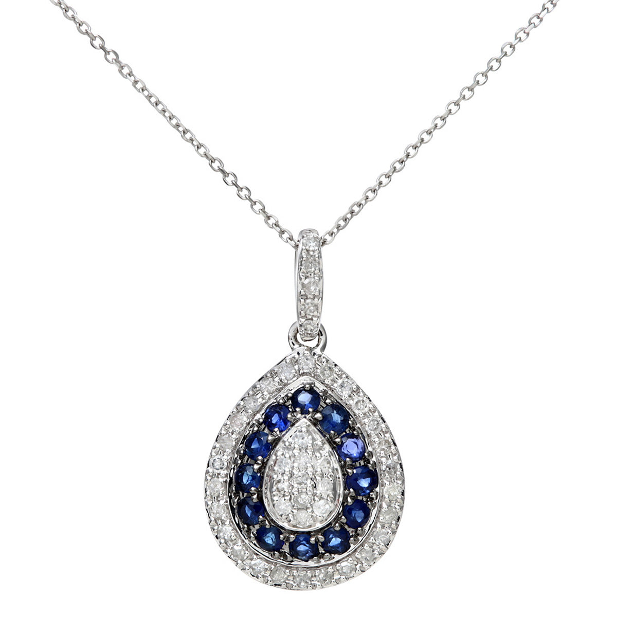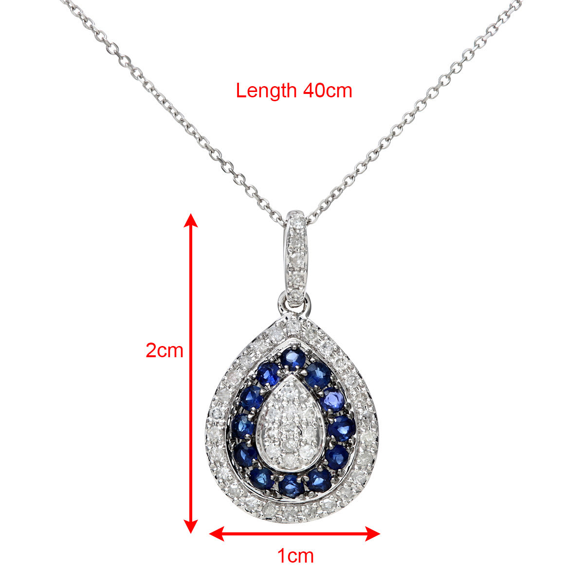 0.3ct Round Sapphire and 0.15ct Diamond Pave Teardrop Pendant in 9ct White Gold