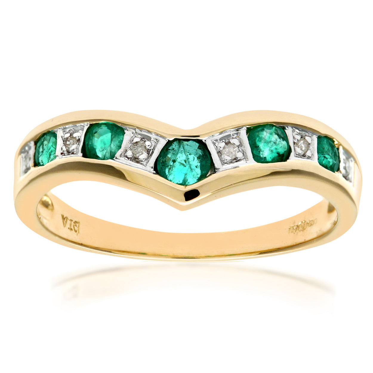 0.46ct Round Emerald and Diamond Pave Set Wishbone Eternity Ring in UK Hallmarked 9ct Yellow Gold