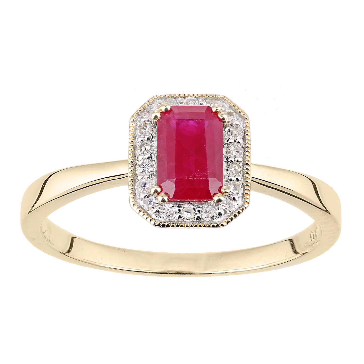 0.55ct Octagonal Ruby and Round Diamond Cluster Ring in UK Hallmarked 9ct Yellow Gold