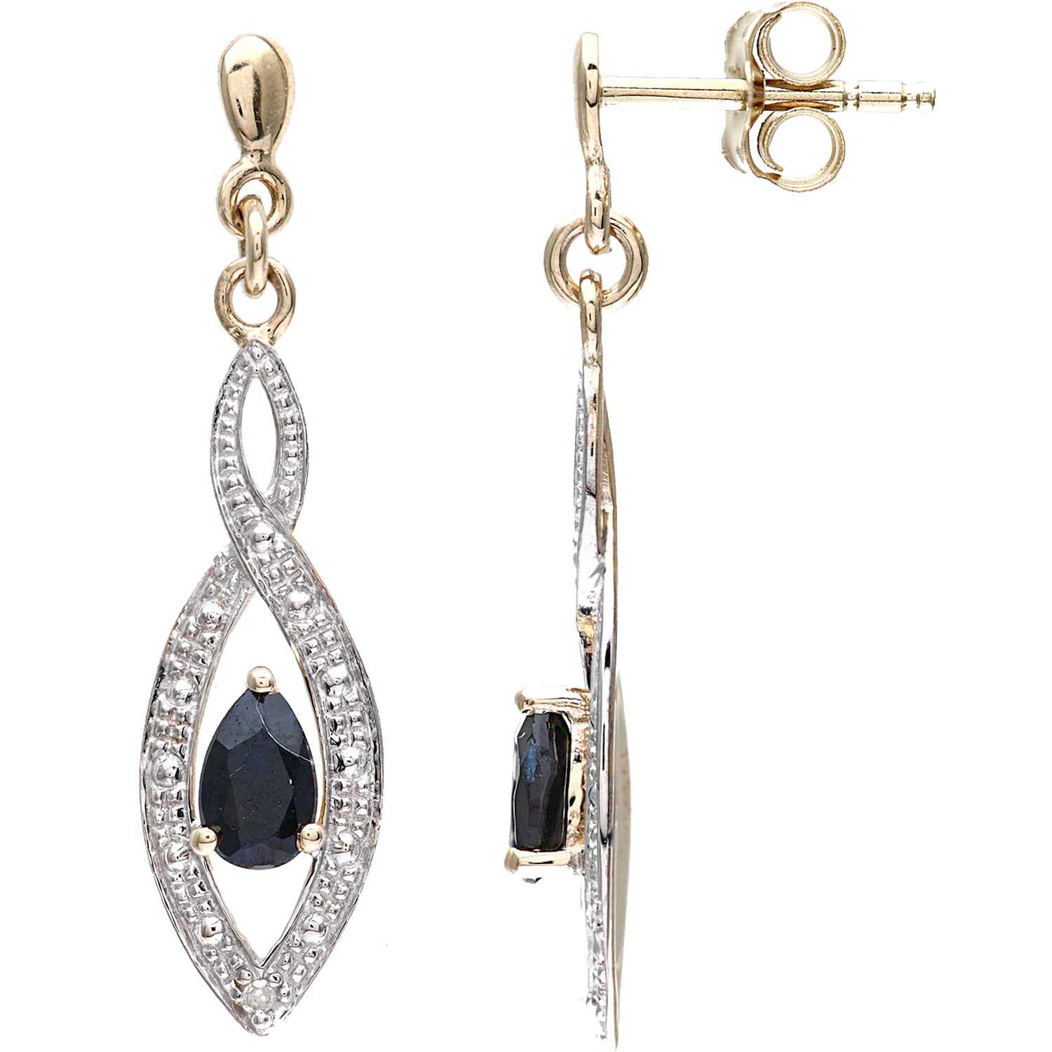 0.55ct Pear Shape Black Sapphire and Pave Set Diamond Drop Earrings in 9ct Yellow Gold