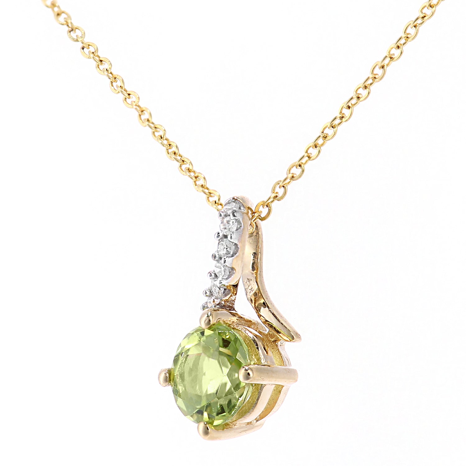 0.55ct Round Peridot and Diamond Pave Pendant in UK Hallmarked 9ct Yellow Gold