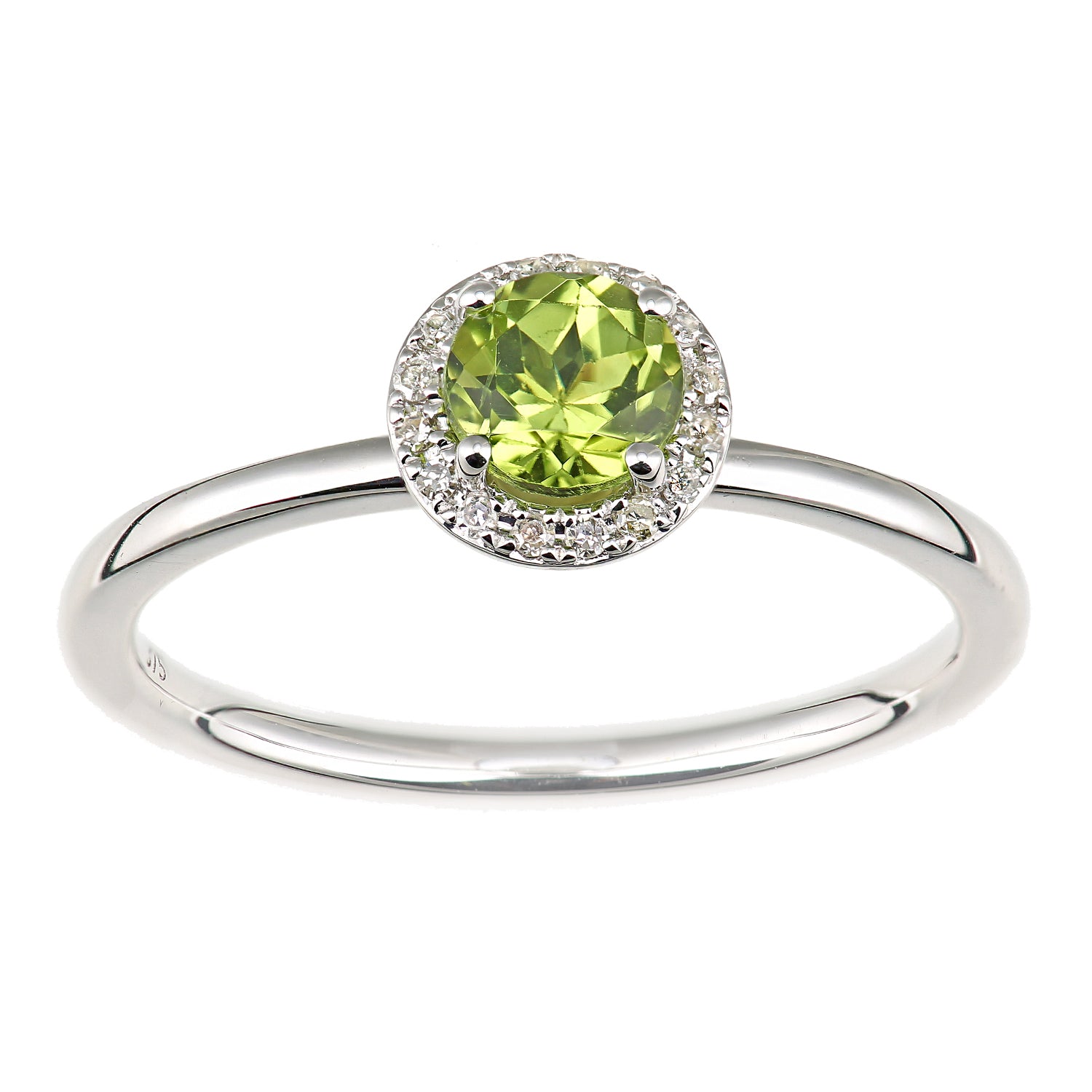 0.59ct Round Peridot and Round Diamond Halo Ring in UK Hallmarked 9ct White Gold