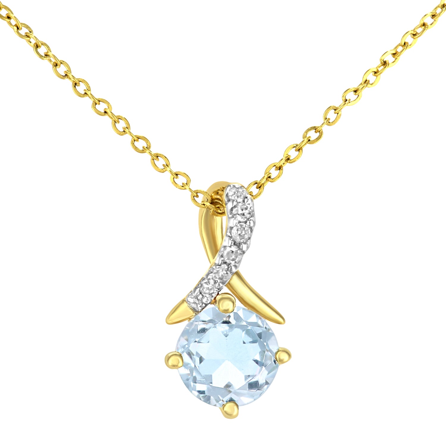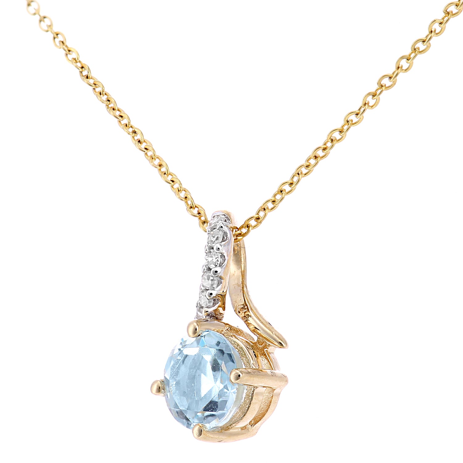 0.62ct Round Blue Topaz and Diamond Pave Pendant in UK Hallmarked 9ct Yellow Gold
