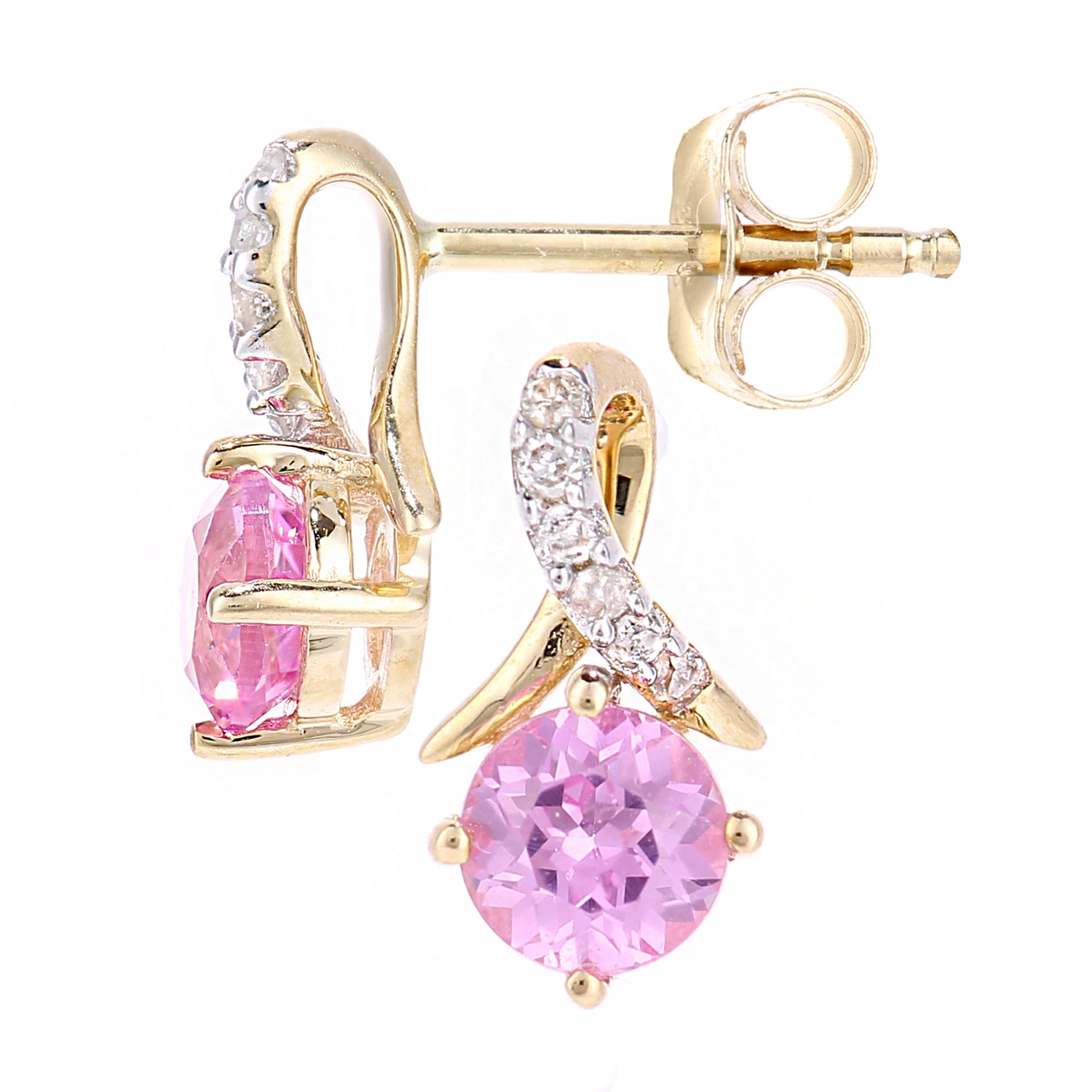 0.8ct Round Created Pink Sapphire and Pave Set Diamond Twist Earrings in 9ct Yellow Gold