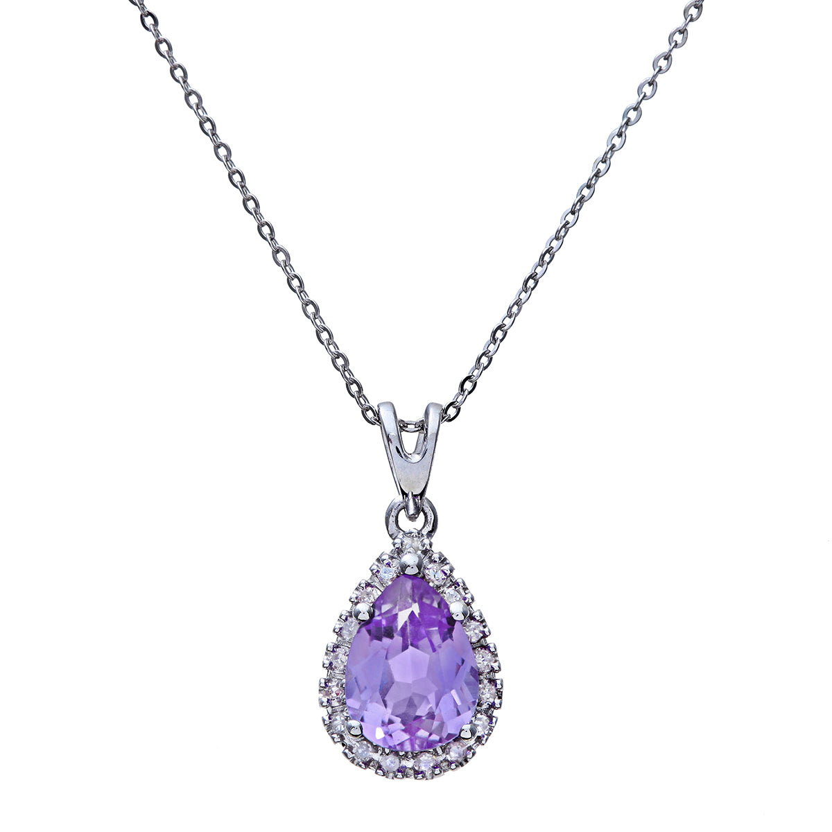 1.04ct Pear Shape Amethyst and Diamond Teardrop Pendant in UK Hallmarked 9ct White Gold