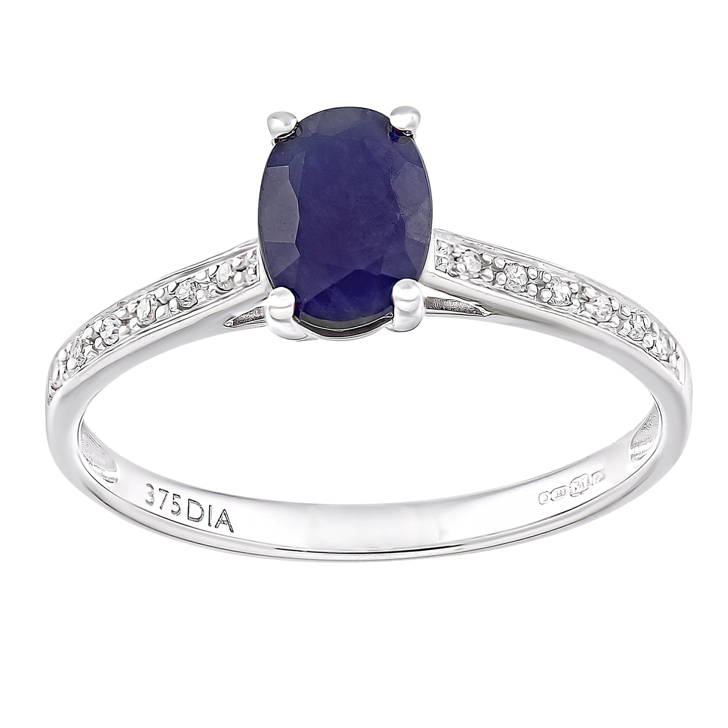 1.12ct Round Sapphire and Diamond Ring with sidestones in UK Hallmarked 9ct White Gold