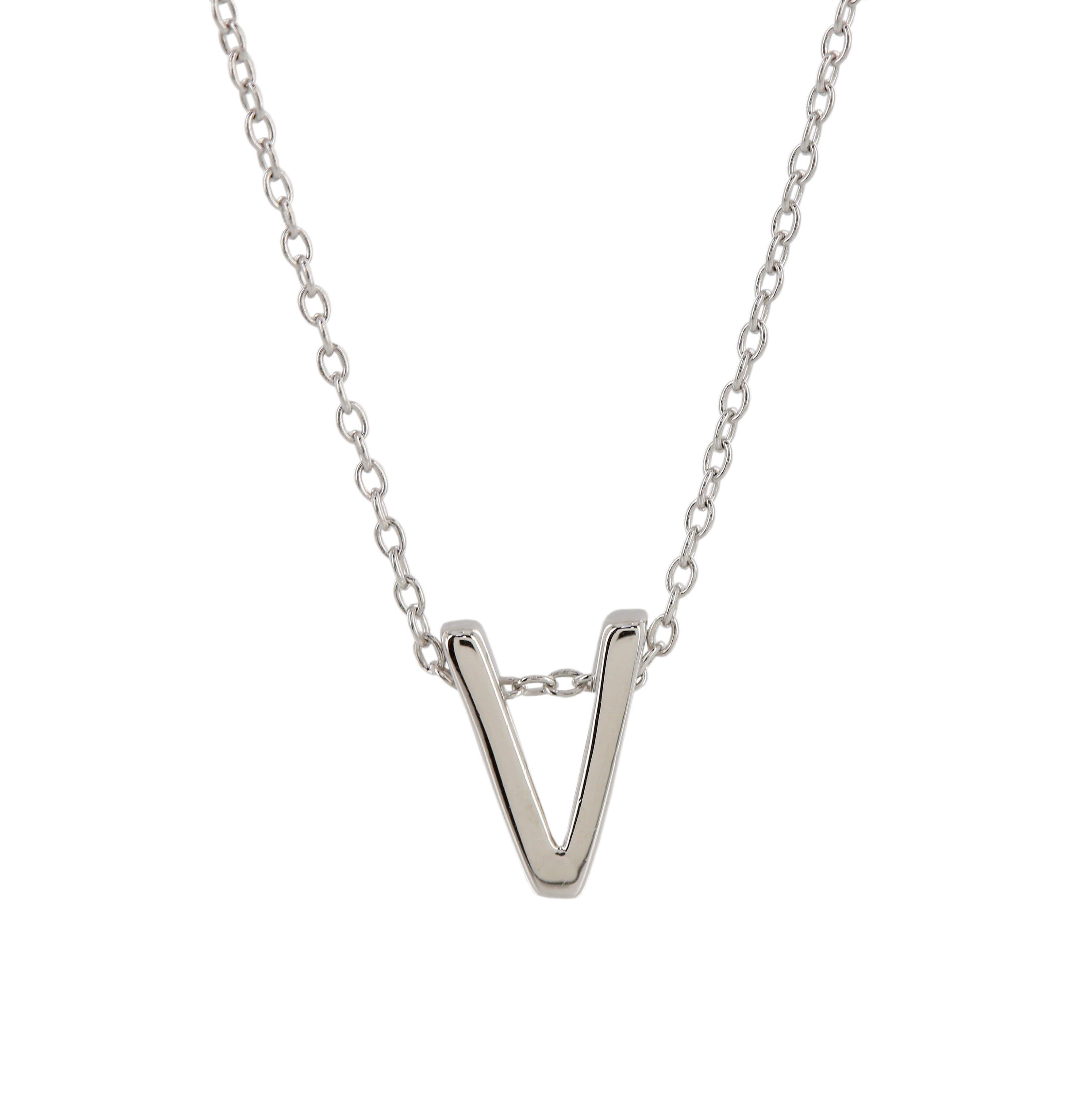 Charm Initial Letter V 925 Sterling Silver Necklace with Chain