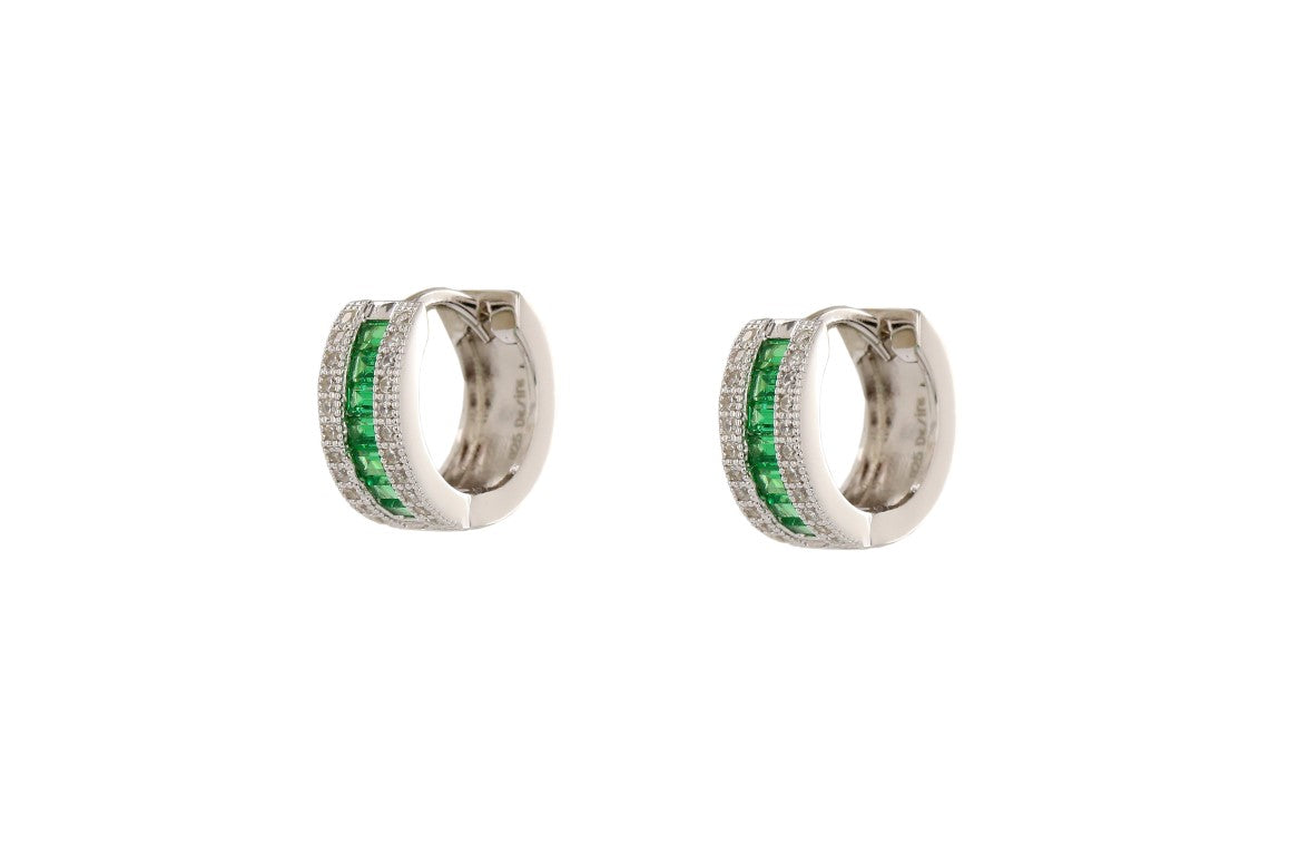 Charming Design 925 Sterling Silver Hugging Earrings studded with Green CZ
