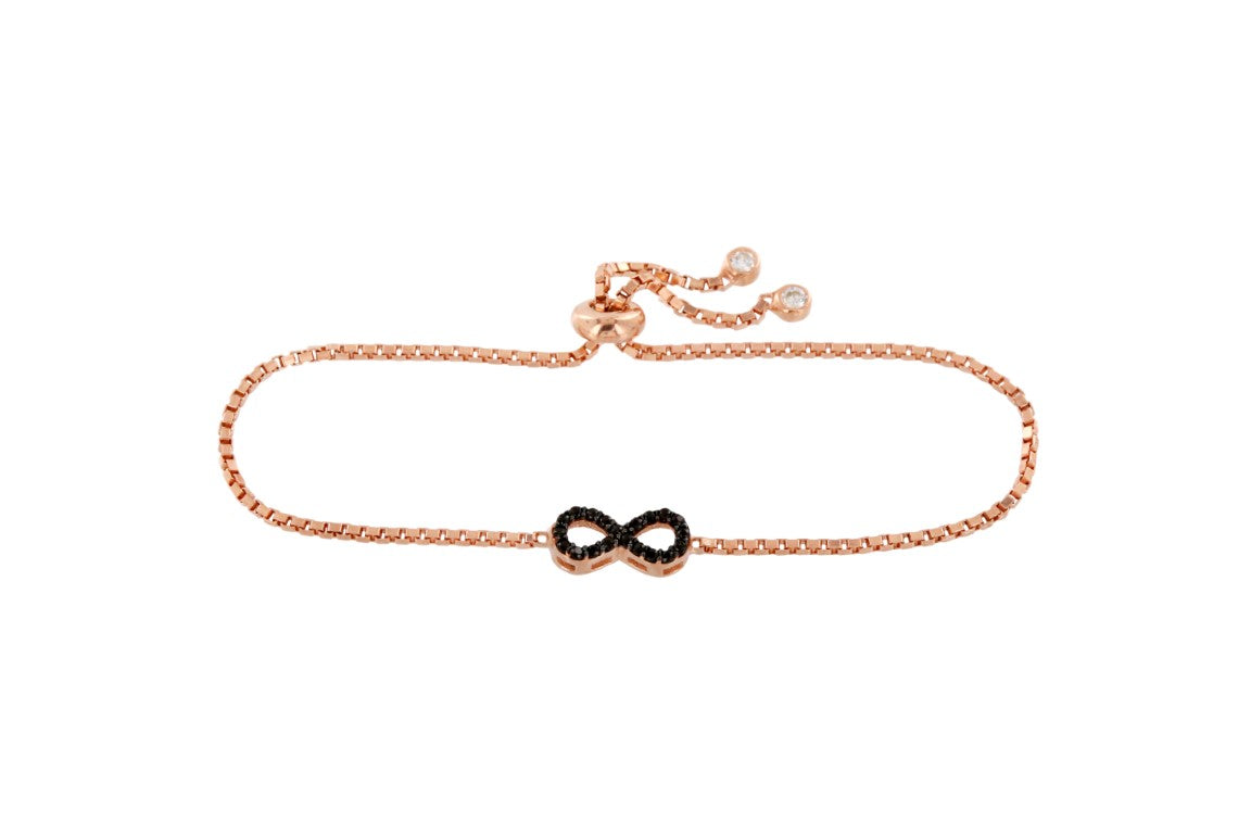 Charming Design Eternity Rose Gold Colour 925 Sterling Silver Toggle / Slider Bracelet studded with Black CZ
