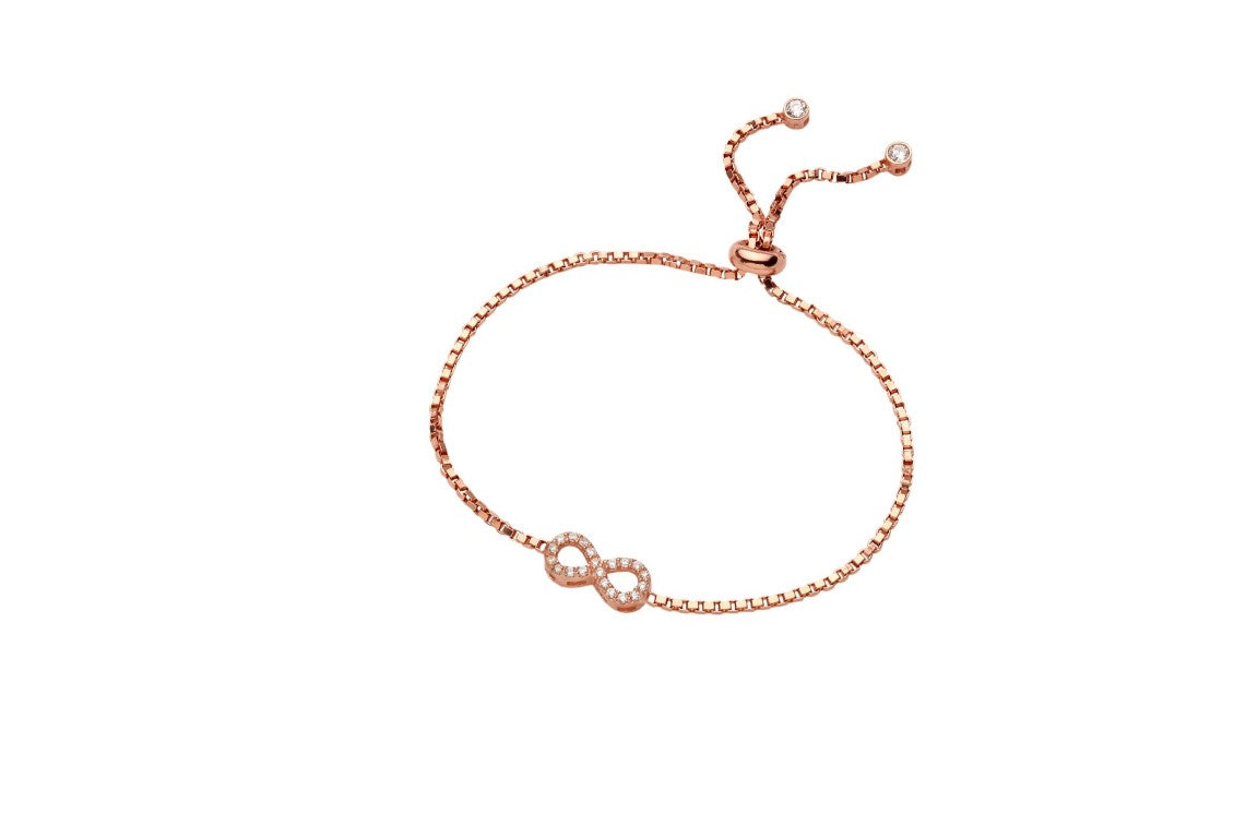Charming Design Eternity Rose Gold Colour 925 Sterling Silver Toggle / Slider Bracelet studded with CZ
