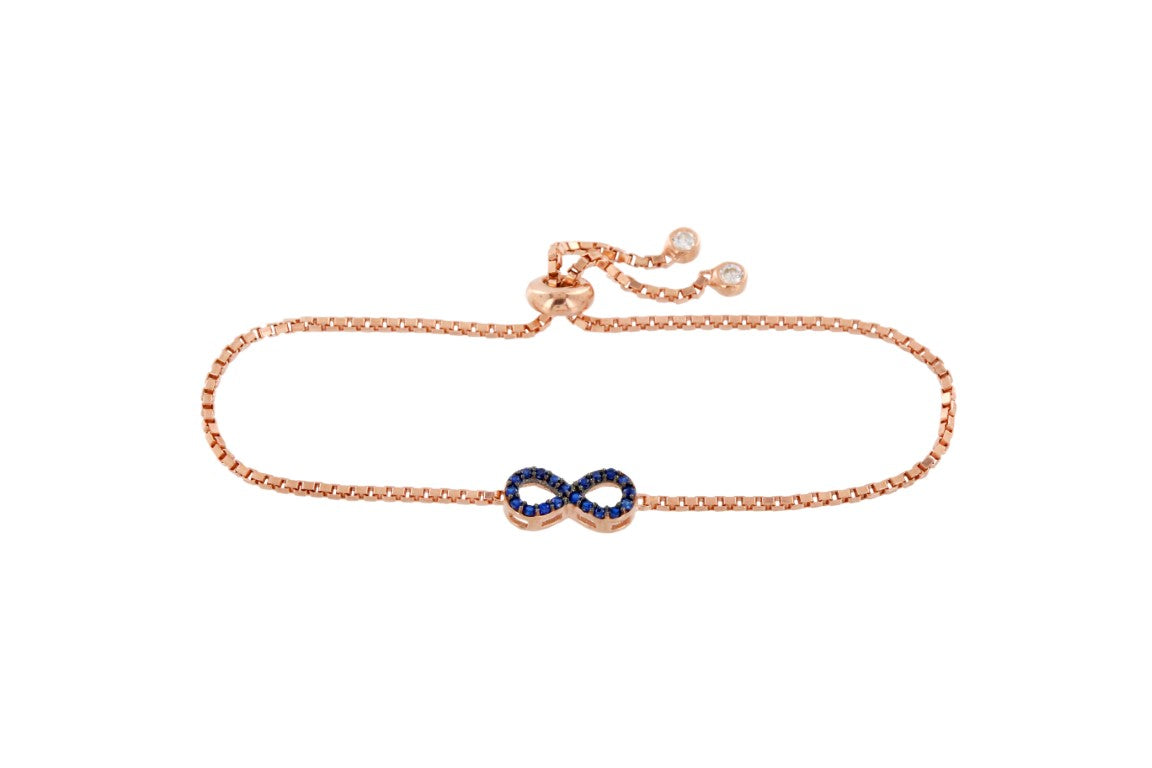 Charming Design Eternity Rose Gold Colour 925 Sterling Silver Toggle / Slider Bracelet studded with Sapphire CZ