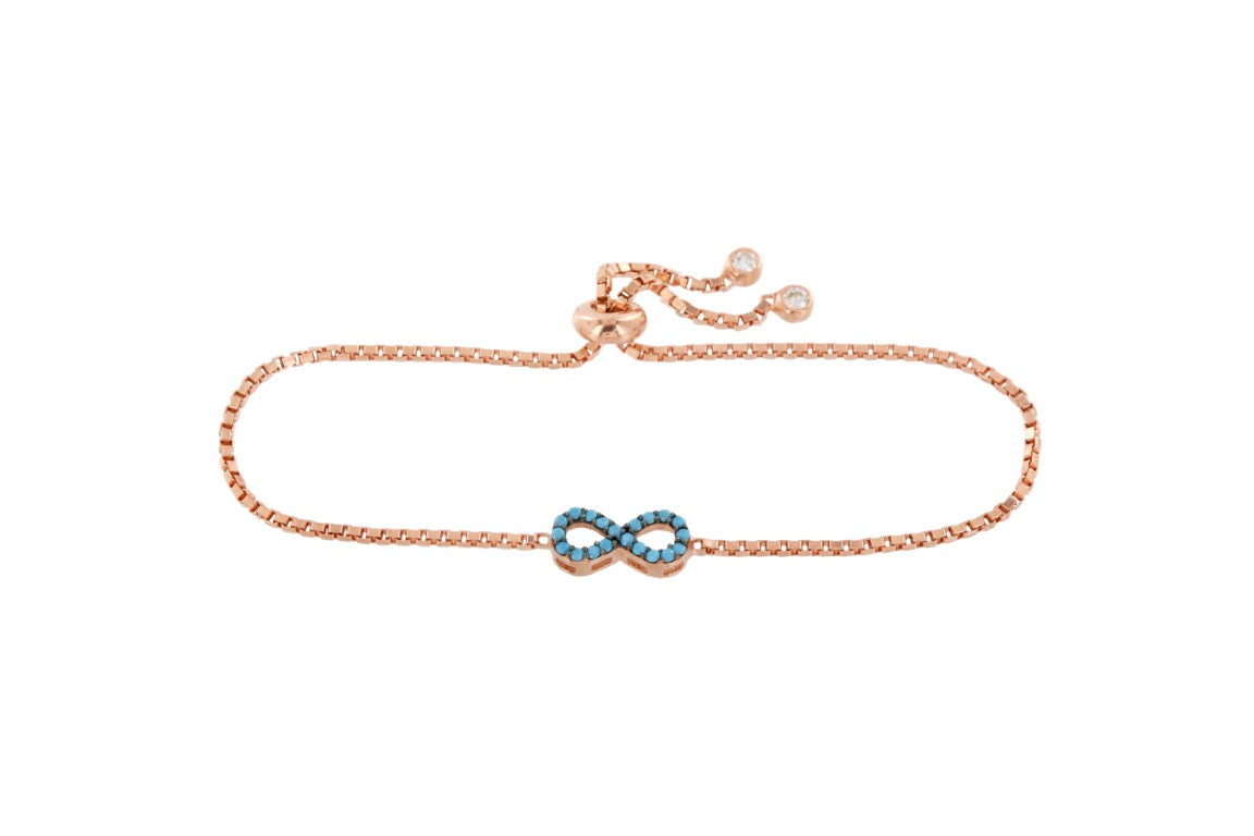 Charming Design Eternity Rose Gold Colour 925 Sterling Silver Toggle / Slider Bracelet studded with Turquoise CZ