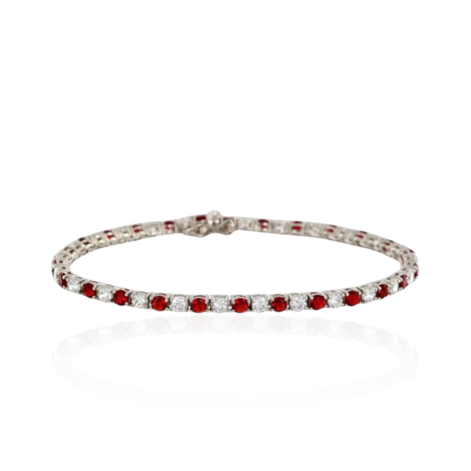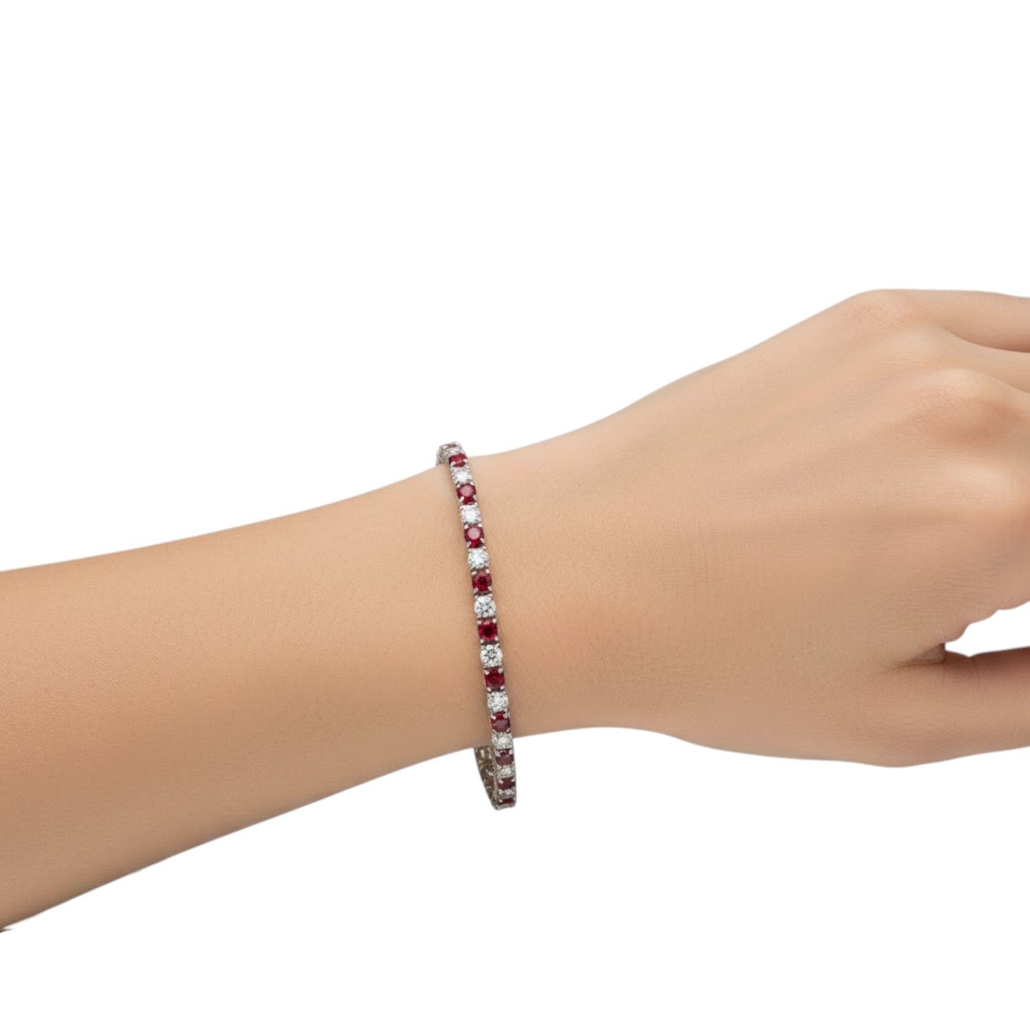Enhance your elegance with this charming ruby tennis bracelet crafted from genuine 925 sterling silver. Featuring a continuous line of vibrant ruby-colored stones, this bracelet offers timeless sophistication and radiant sparkle.