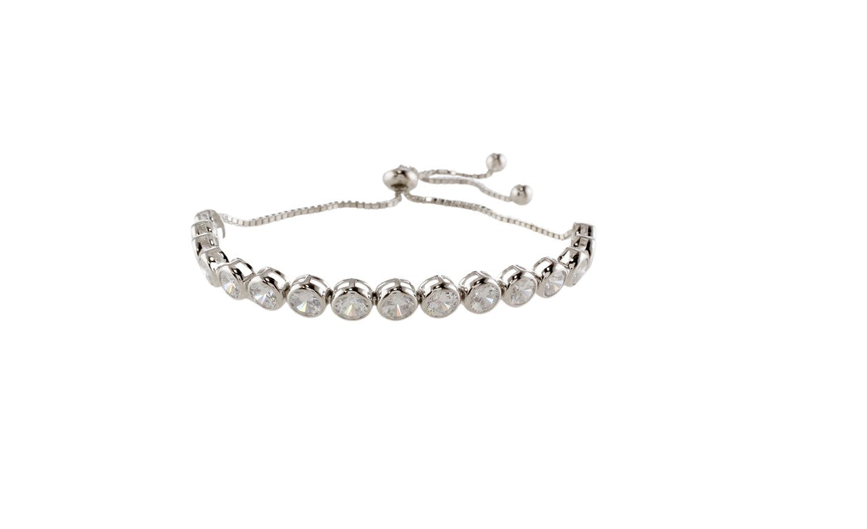 Charming Tennis Bracelet 925 Sterling Silver studded with 5mm CZ Toggle / Slider