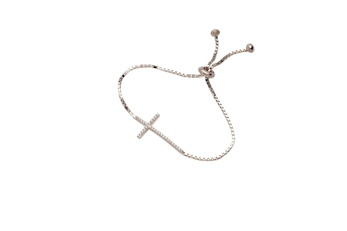 Cross Design 925 Sterling Silver Toggle / Slider Bracelet studded with CZ