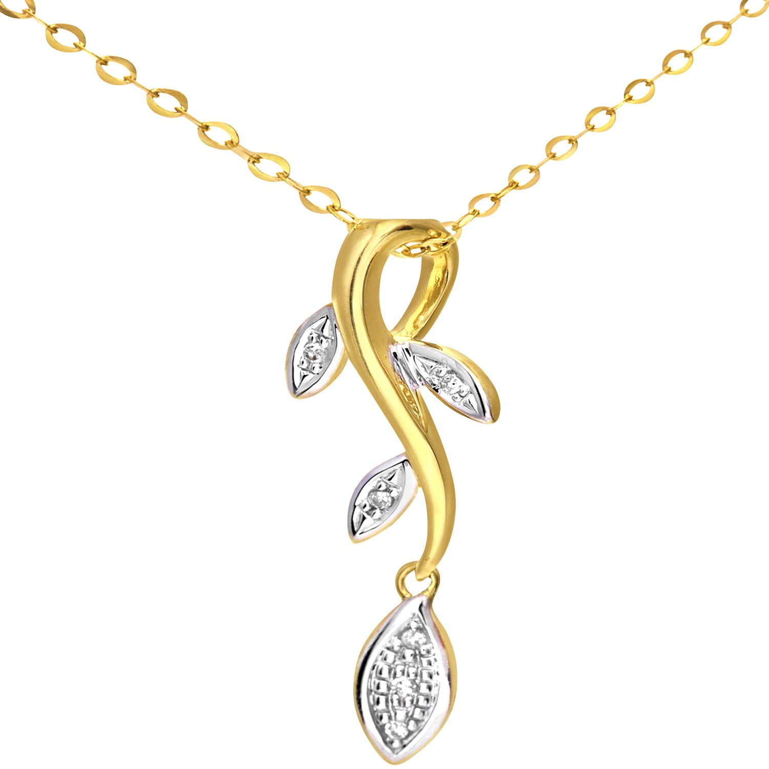 Diamond Pave Leaf and Flower Pendant in UK Hallmarked 9ct Yellow Gold