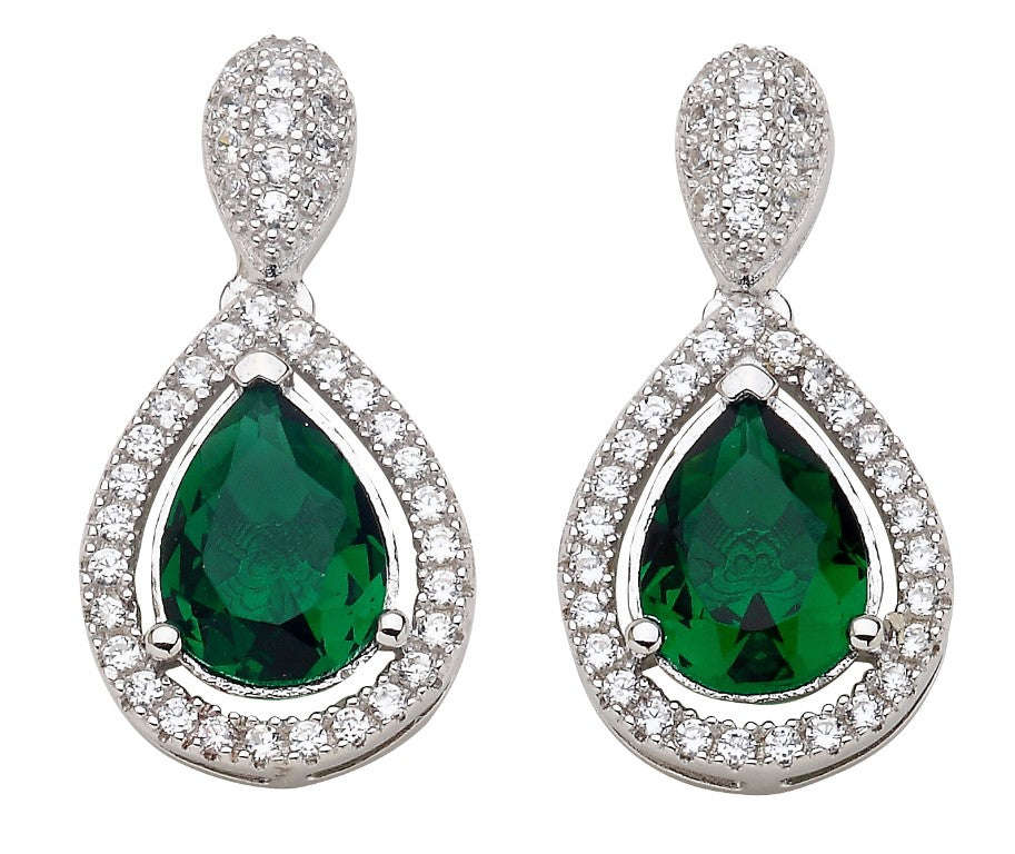 Elegant Design Dangling Emerald Pear Cut 925 Sterling Silver Earrings studded with CZ
