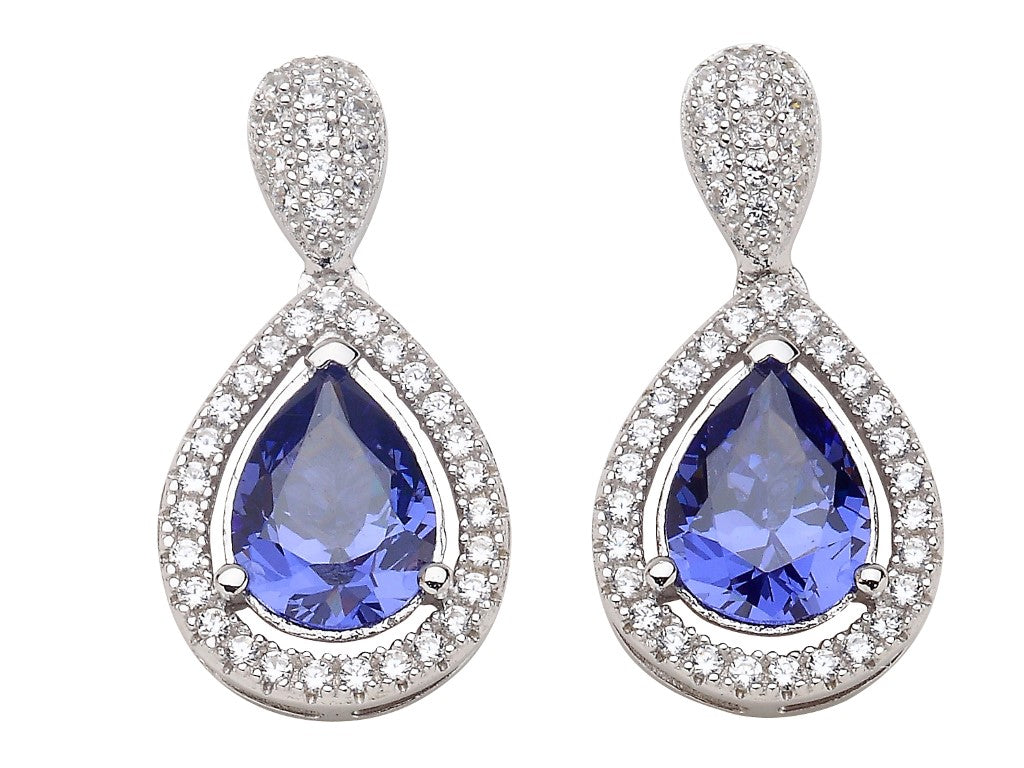 Elegant Design Dangling Tanzanite Pear Cut 925 Sterling Silver Earrings studded with CZ