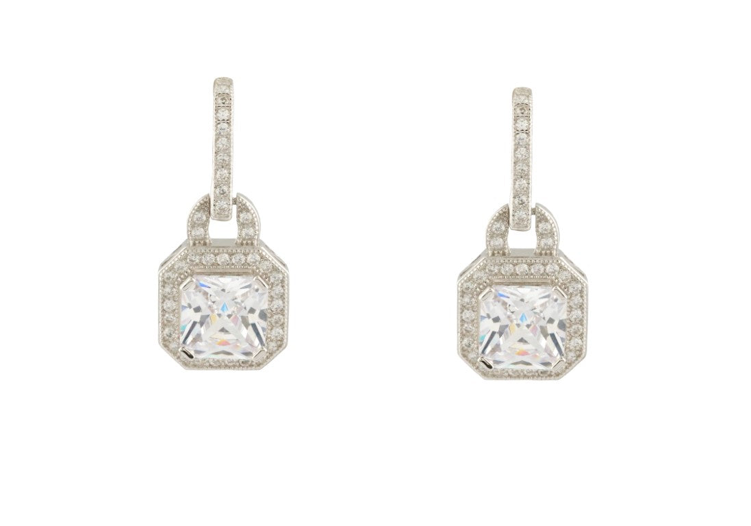Elegant Design Square Shape 925 Sterling Silver Earrings studded with CZ