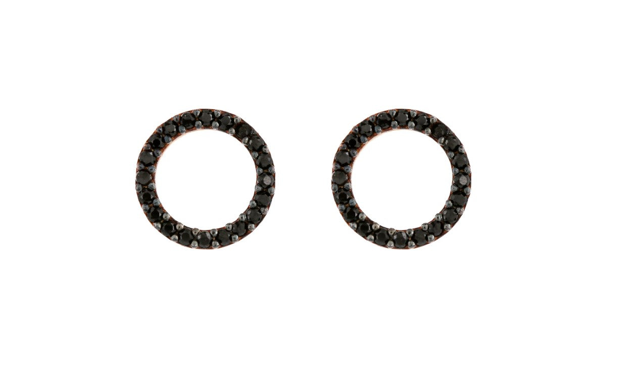 Fashionable Design Circle Shape Rose Gold Colour 925 Sterling Silver Earrings studded with Black CZ
