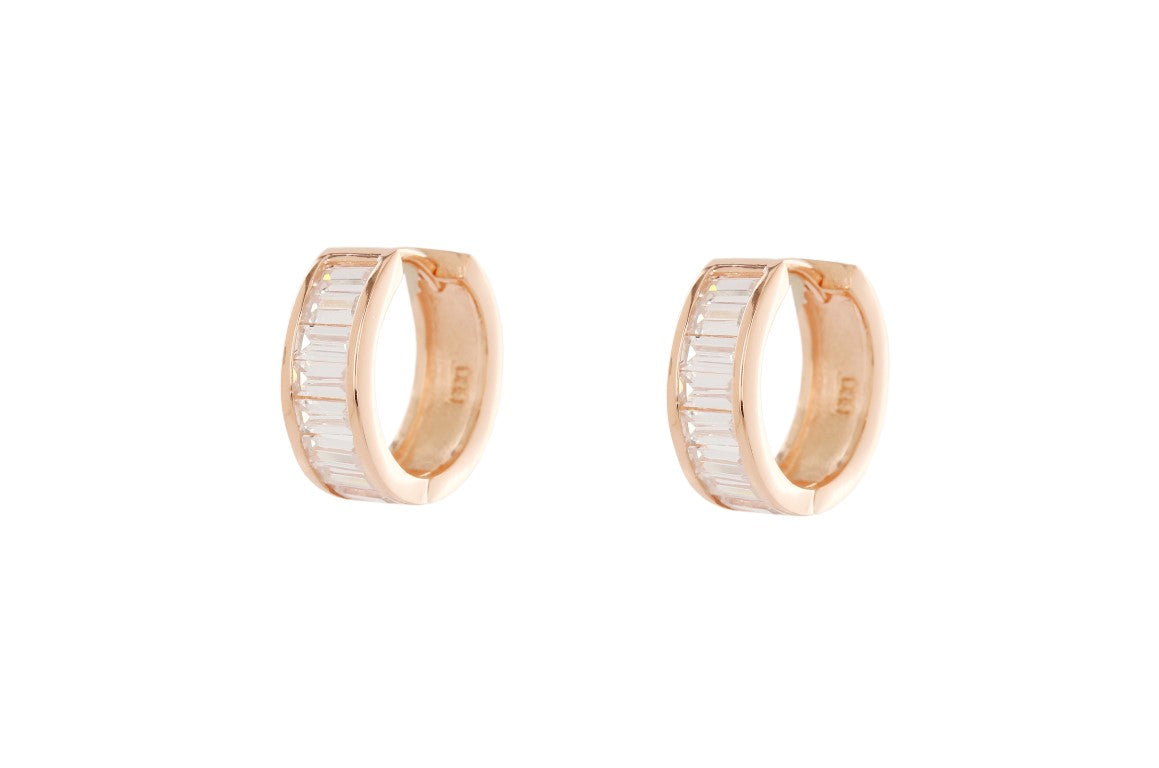 Fashionable Design Rose Gold Colour 925 Sterling Silver Hugging Earrings studded with CZ