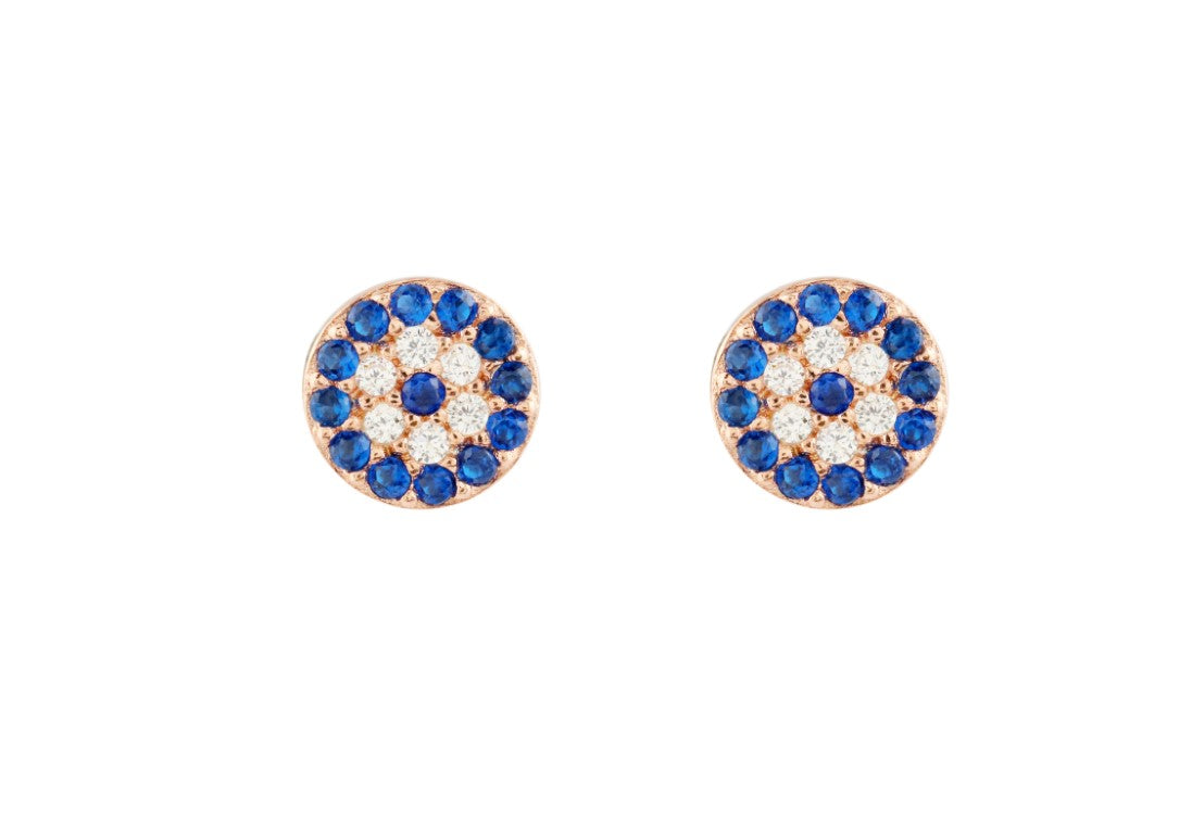 Fashionable Design Round Evil Eye Rose Gold Colour 925 Sterling Silver Earrings studded with CZ