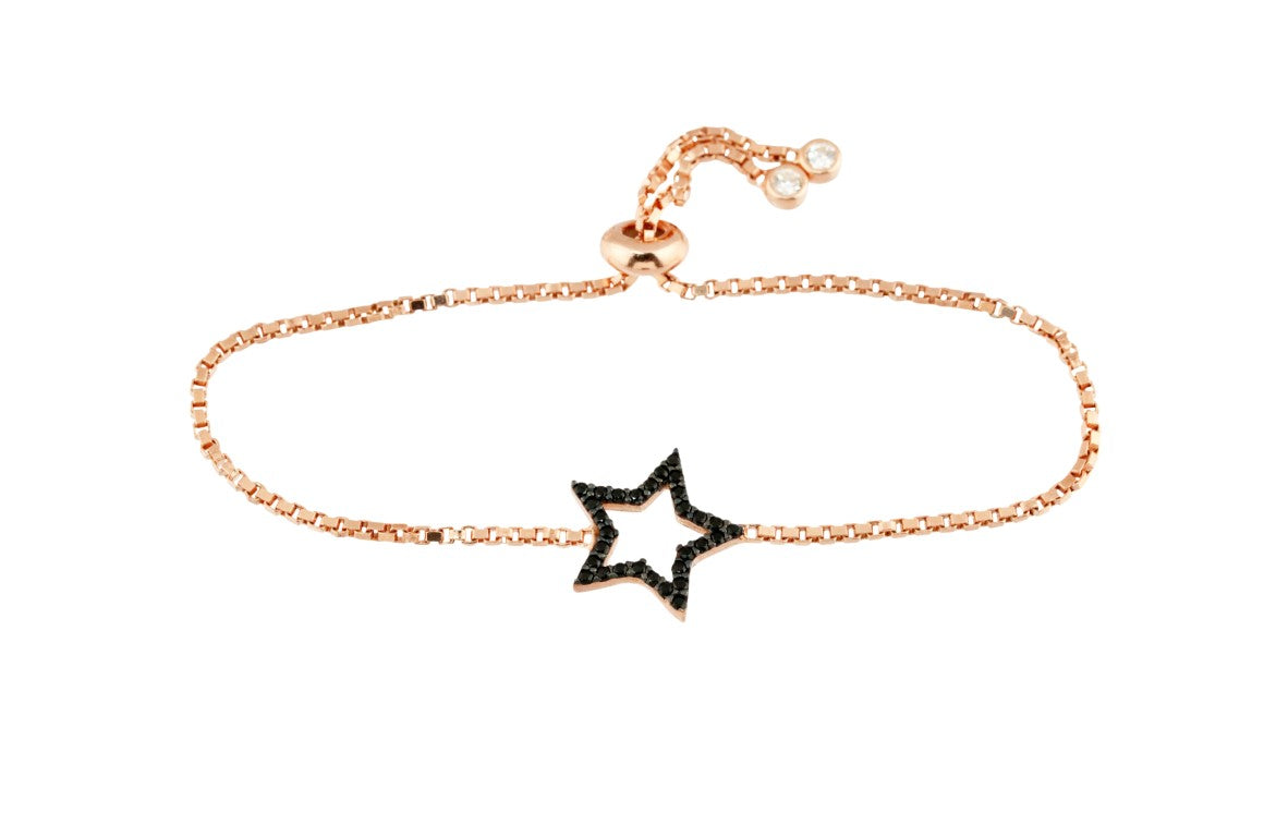 Fashionable Design Star Rose Gold Colour 925 Sterling Silver Toggle / Slider Bracelet studded with Black CZ