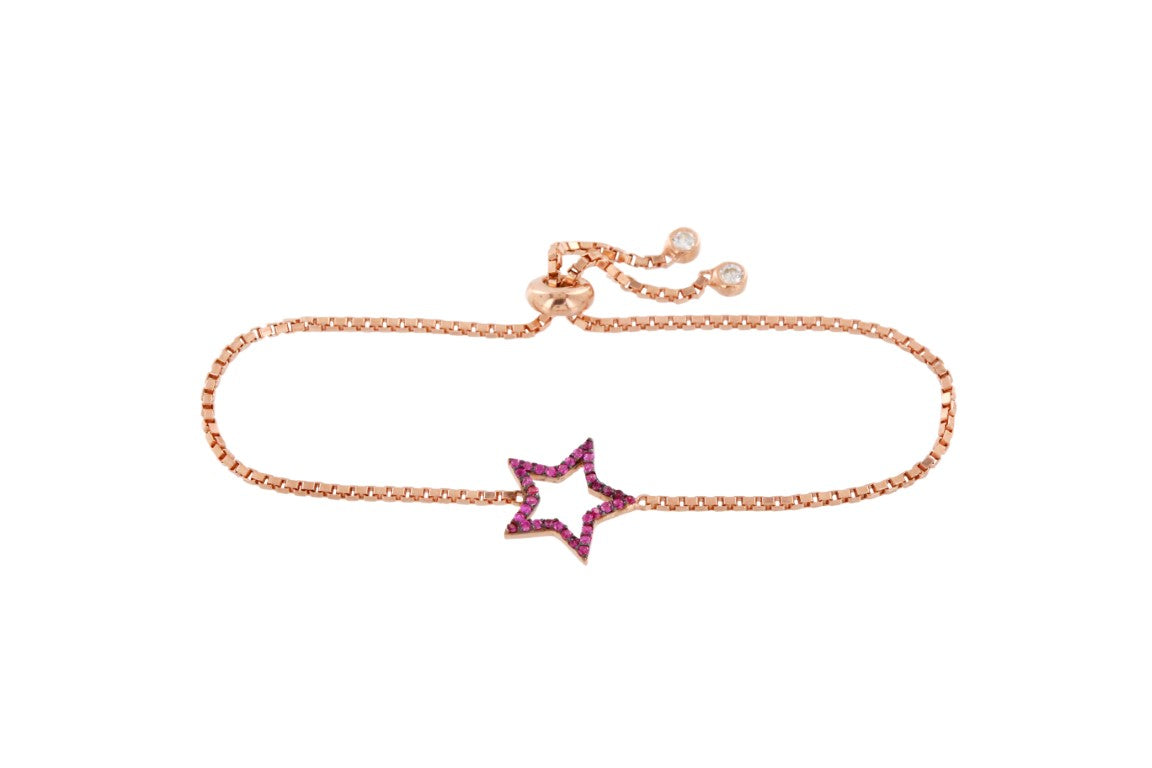 Fashionable Design Star Rose Gold Colour 925 Sterling Silver Toggle / Slider Bracelet studded with Ruby CZ