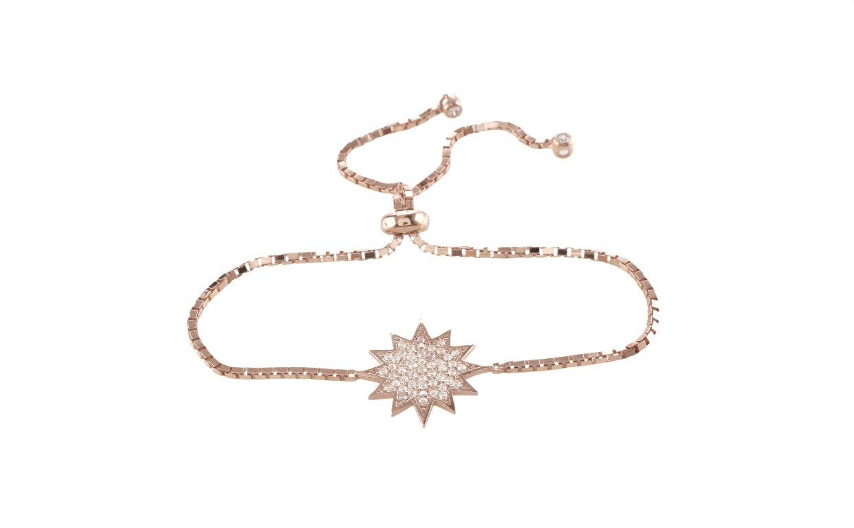 Fashionable Design Sun Rose Gold Colour 925 Sterling Silver Toggle / Slider Bracelet studded with CZ