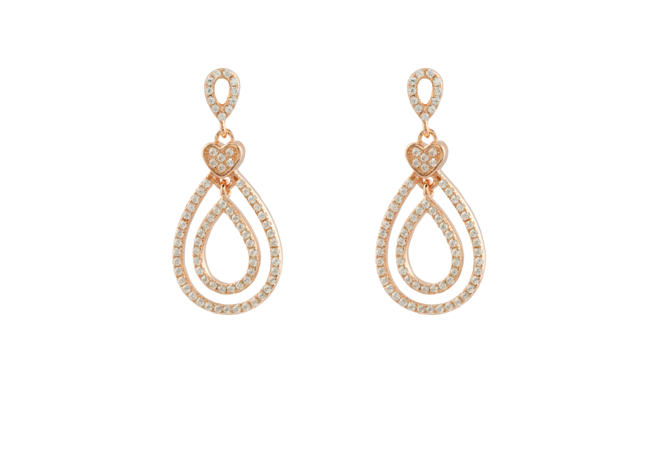 Fashionable Design Tear Drop Rose Gold Colour 925 Sterling Silver Earrings studded with CZ