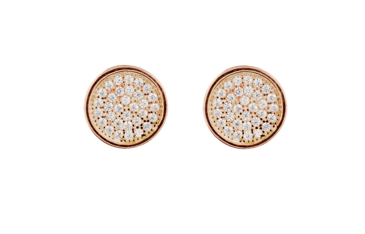 Fashionable Round Shape Rose Gold Colour 925 Sterling Silver Earrings studded with CZ