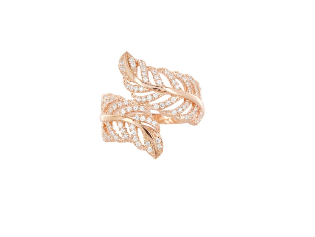Fashionable Style Leaf Design Rose Gold Colour 925 Sterling Silver Ring studded with CZ