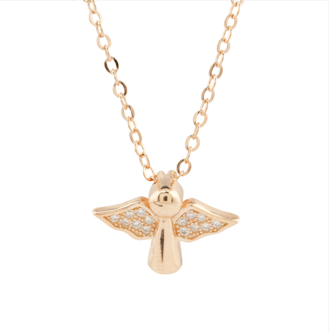 Guardian Angel 925 Sterling Silver Rose Gold Colour Necklace with CZ