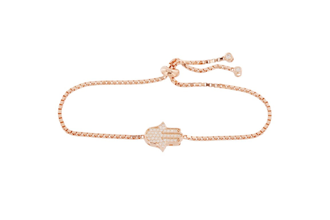 Hamsa Hand of Fatima Rose Gold Colour 925 Sterling Silver Toggle / Slider Bracelet studded with CZ