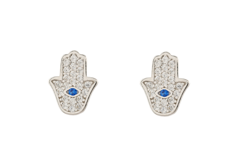 Hand of Fatima with Evil Eye 925 Sterling Silver Earrings studded with CZ