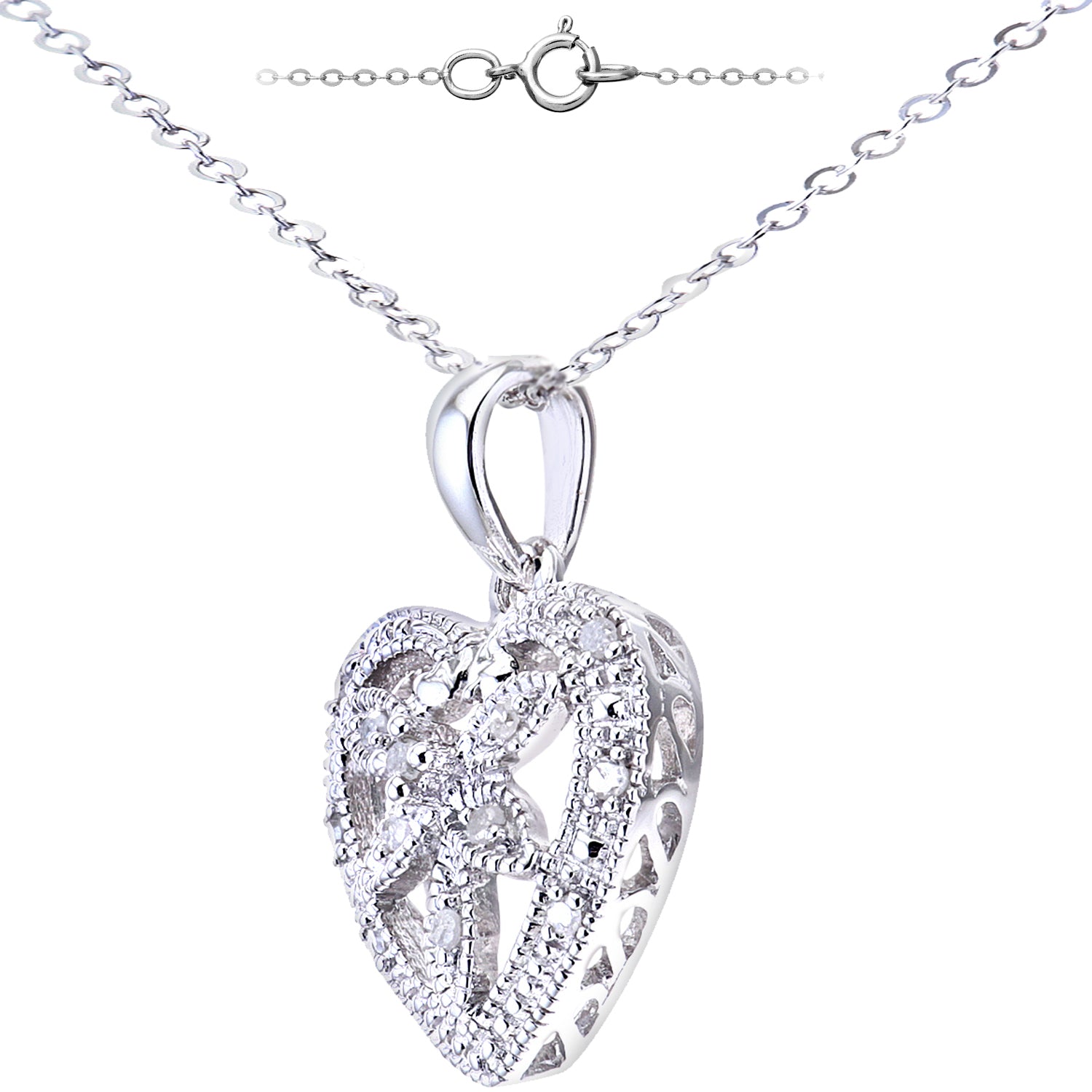 Heart Shape Diamond Pave Pendant in UK Hallmarked 9ct White Gold