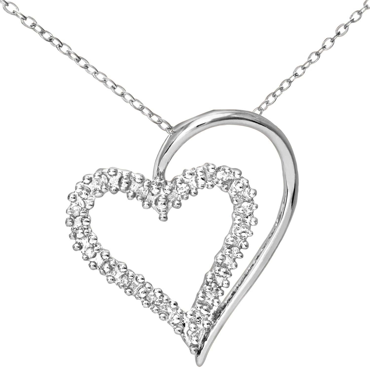 Heart Shape Diamond Pendant in UK Hallmarked 9ct White Gold