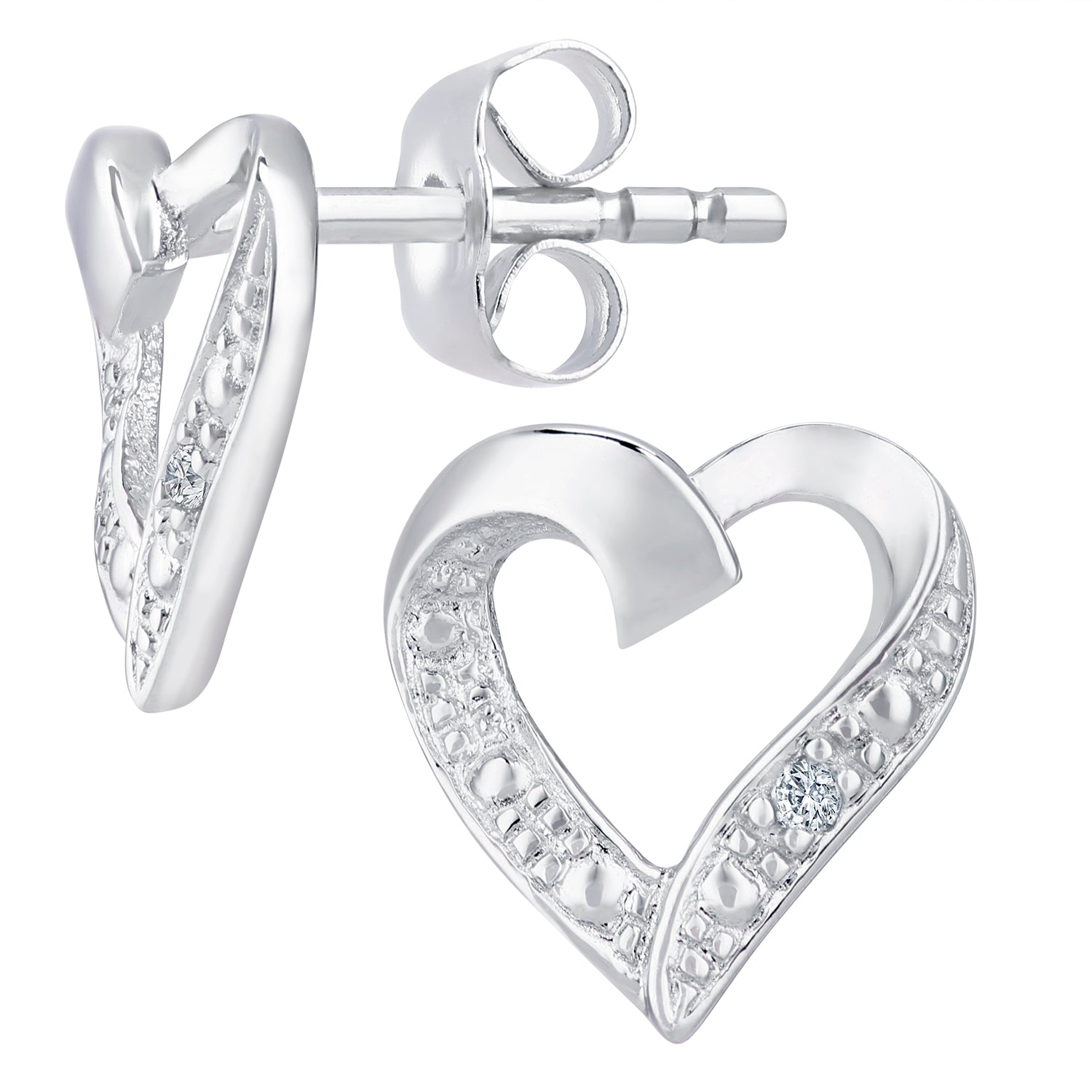 Heart Shape Pave Set Diamond Stud Earrings in 9ct White Gold