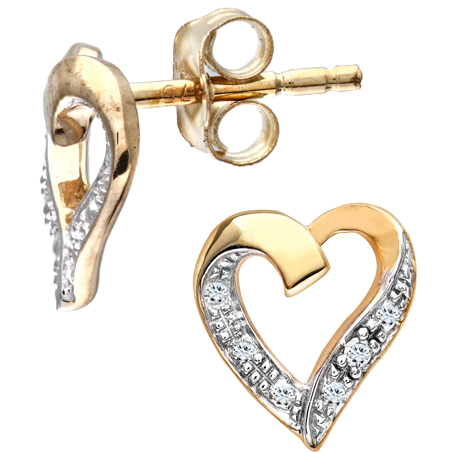Heart Shape Pave Set Diamond Stud Earrings in 9ct Yellow Gold