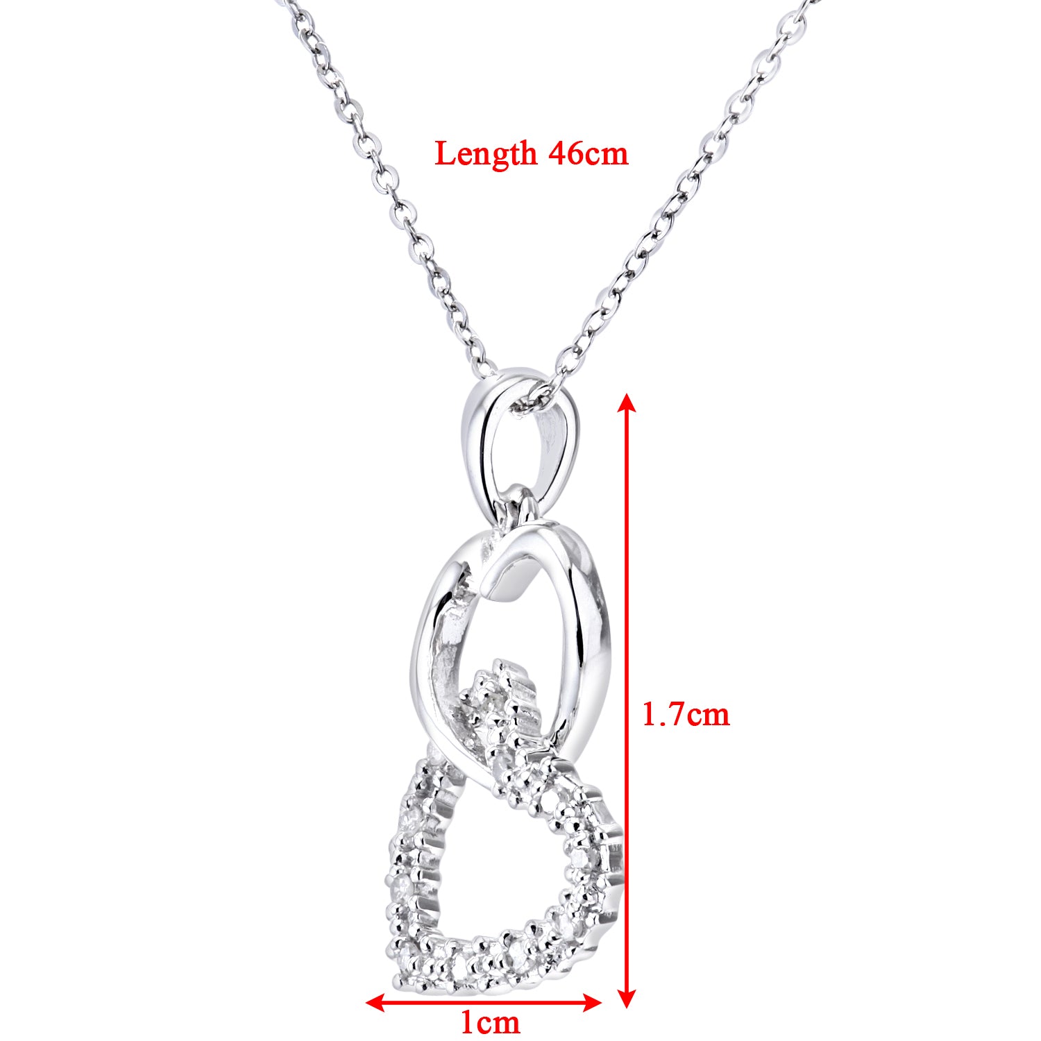 Interlocking Heart Shape Diamond Pendant in UK Hallmarked 9ct White Gold