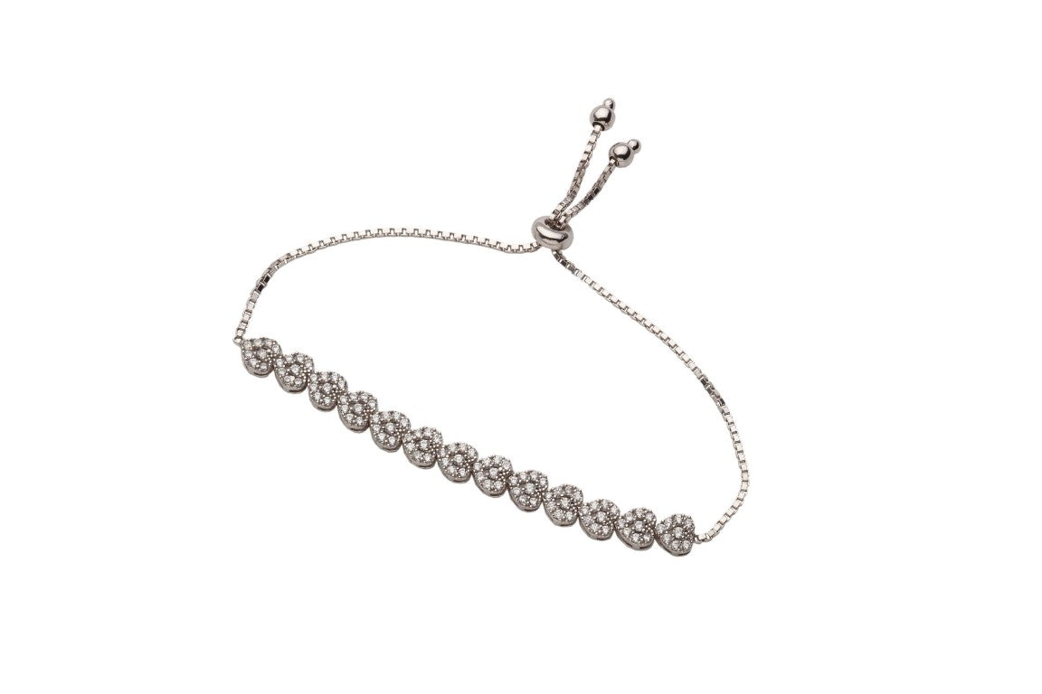 Luxurious Design Heart Shape 925 Sterling Silver Toggle / Slider Bracelet studded with CZ