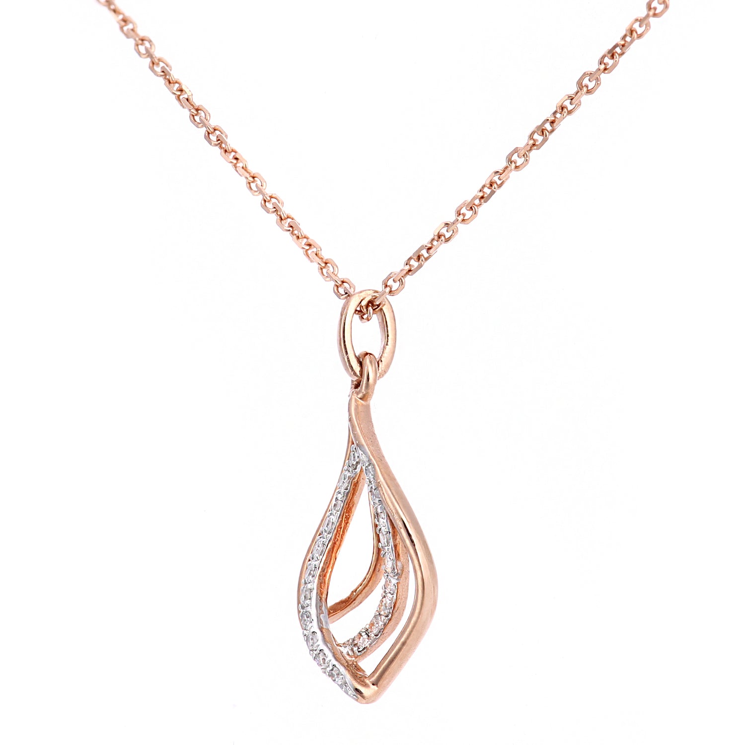 Micro Set Diamond Swirl Pendant in 9ct Rose Gold
